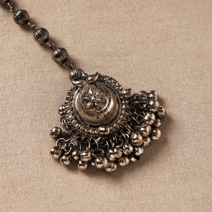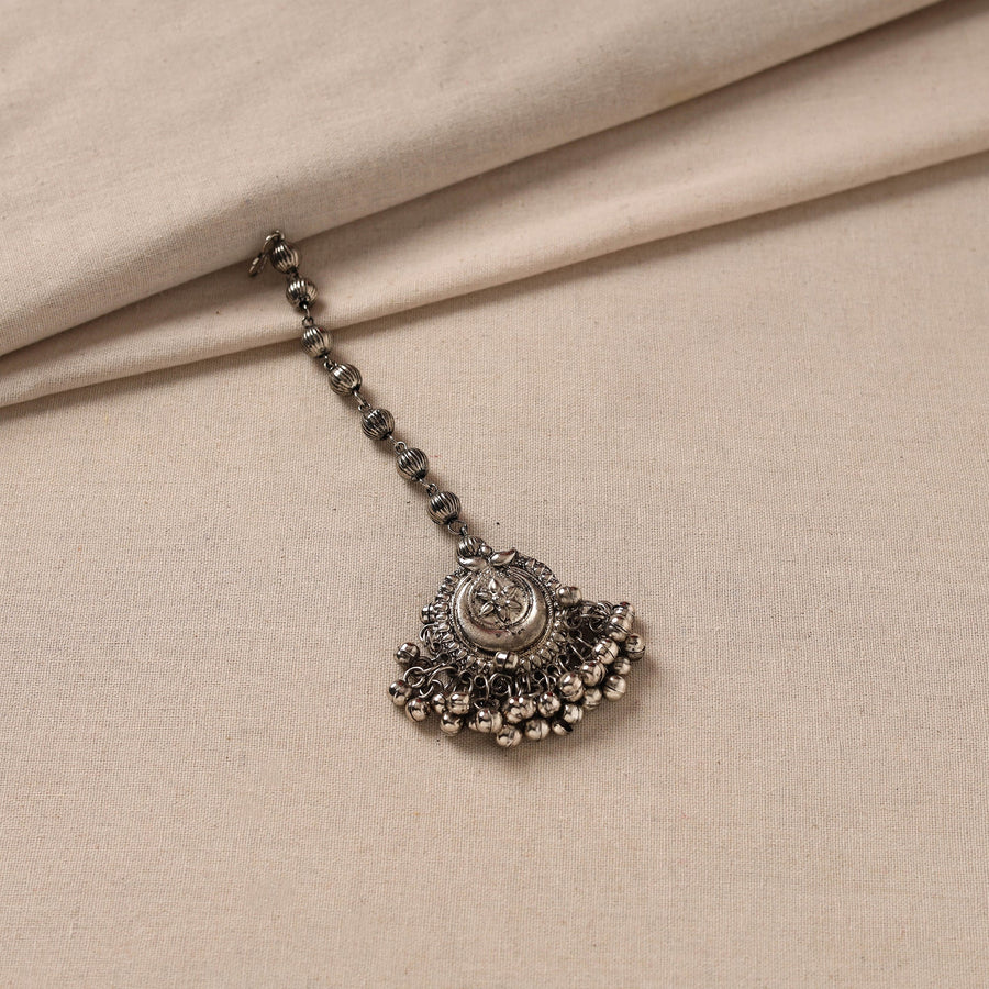 | Material | Add timeless elegance to your jewelry collection with this antique finish oxidised white metal maang tikka. Featuring a stunning antique finish and intricate detailing, it’s the perfect accessory for casual outfits or festive occasions. |