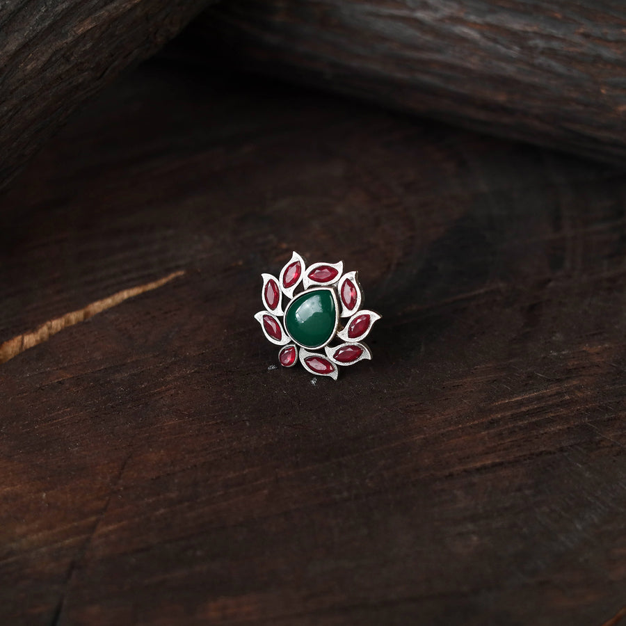 This multicolor antique silver finish oxidised stonework ring features fine detailing with a rustic charm. Designed to complement both ethnic and modern outfits, it adds a distinctive edge to your jewellery collection. Lightweight and easy to wear, this ring brings a graceful touch that elevates your style for any occasion.