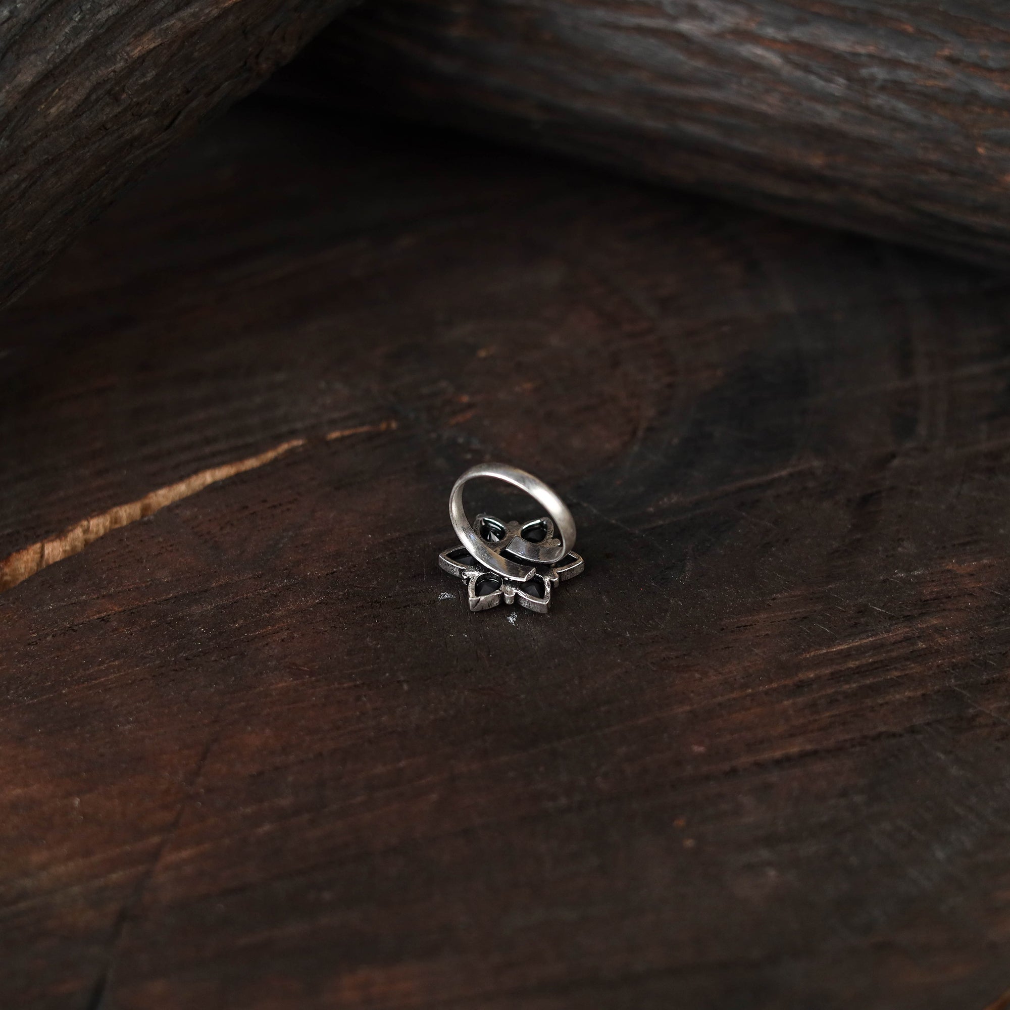 This black antique silver finish oxidised stonework ring features fine detailing with a rustic charm. Designed to complement both ethnic and modern outfits, it adds a distinctive edge to your jewellery collection. Lightweight and easy to wear, this ring brings a graceful touch that elevates your style for any occasion.