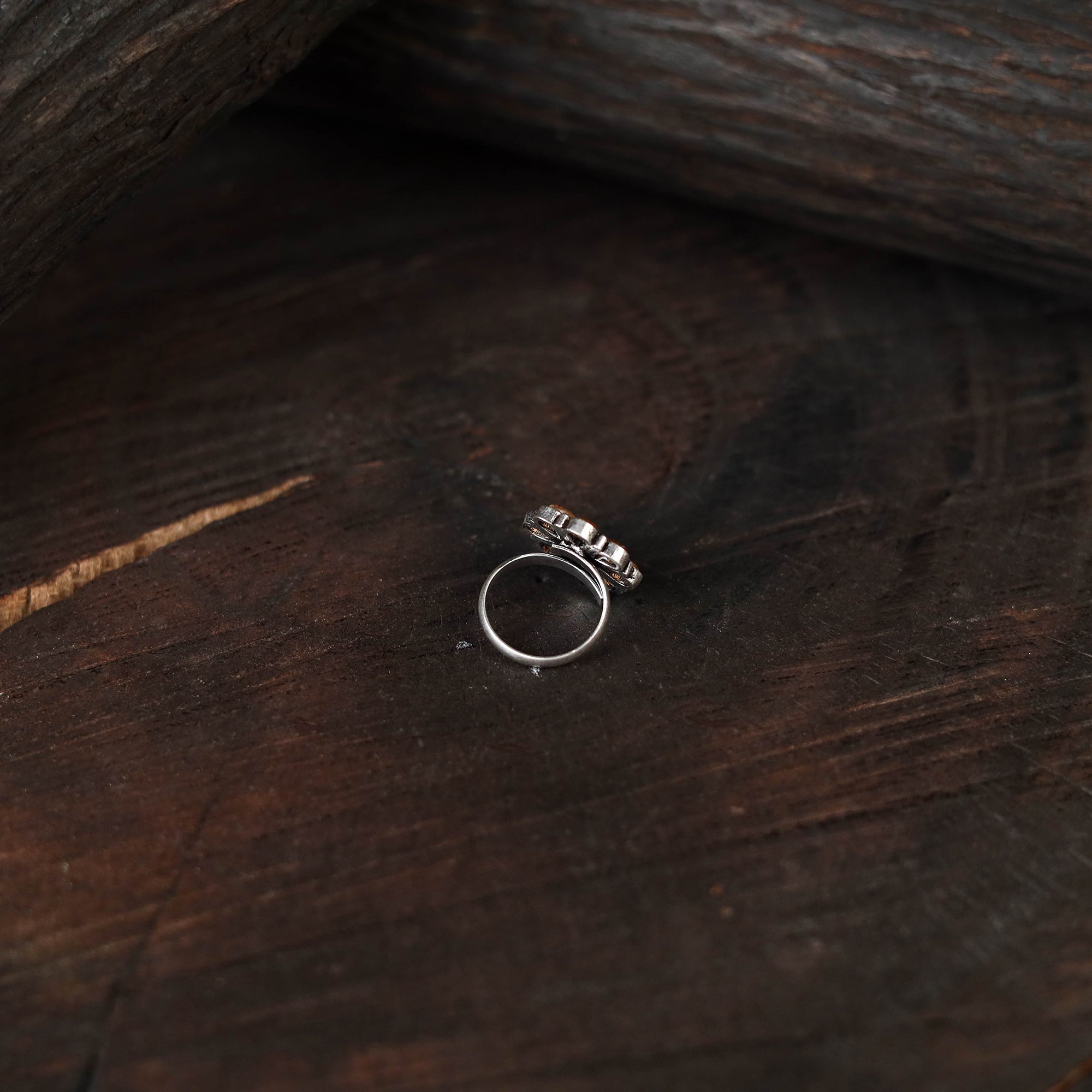 This orange antique silver finish oxidised stonework ring features fine detailing with a rustic charm. Designed to complement both ethnic and modern outfits, it adds a distinctive edge to your jewellery collection. Lightweight and easy to wear, this ring brings a graceful touch that elevates your style for any occasion.