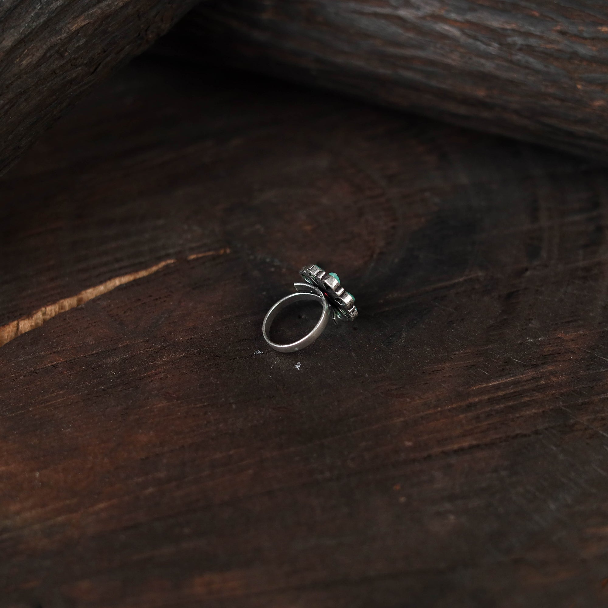 This green antique silver finish oxidised stonework ring features fine detailing with a rustic charm. Designed to complement both ethnic and modern outfits, it adds a distinctive edge to your jewellery collection. Lightweight and easy to wear, this ring brings a graceful touch that elevates your style for any occasion.