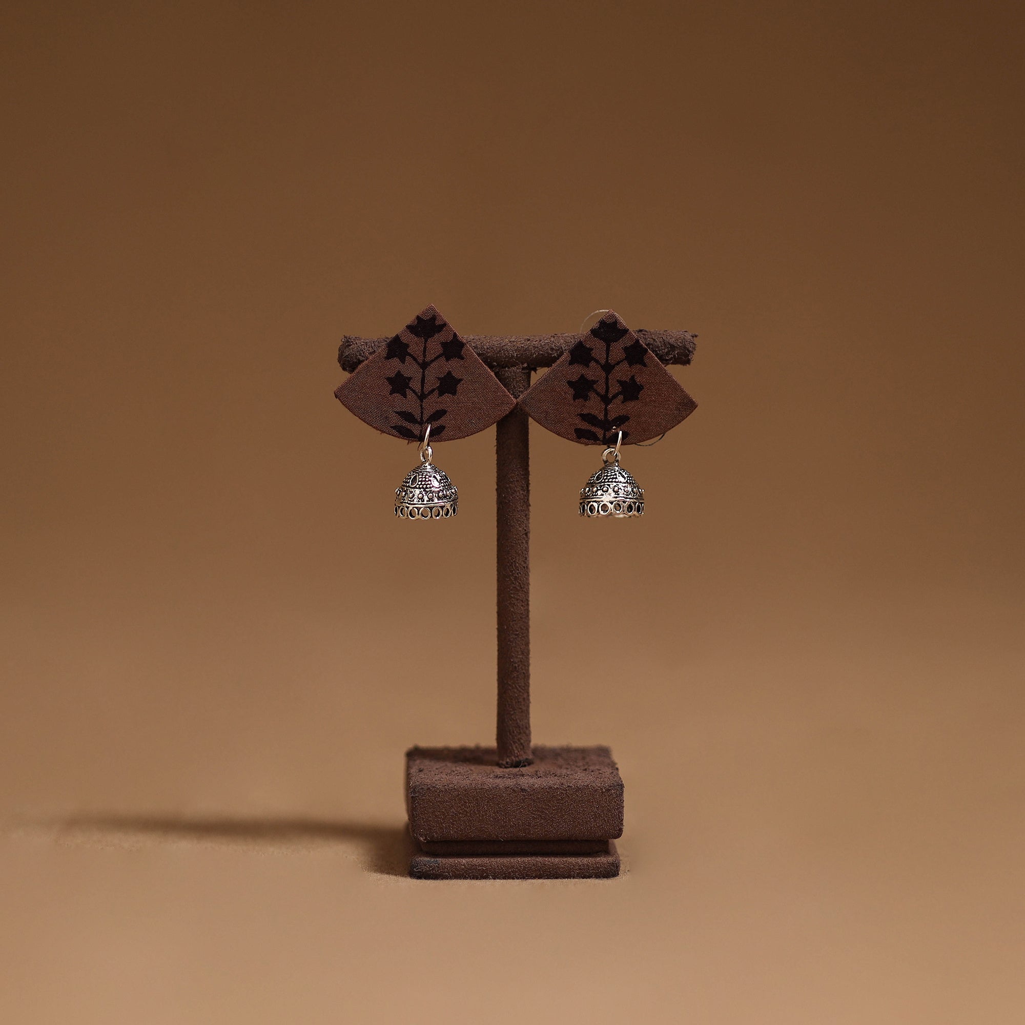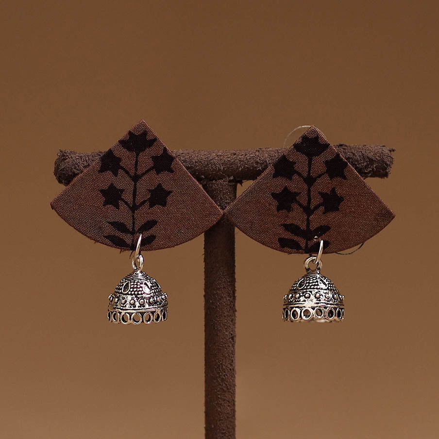 Handmade fabric earrings with german silver jhumki is attached at the end, that enhances its charm. Perfect for everyday wear or special occasions, these earrings blend traditional style with a graceful touch.