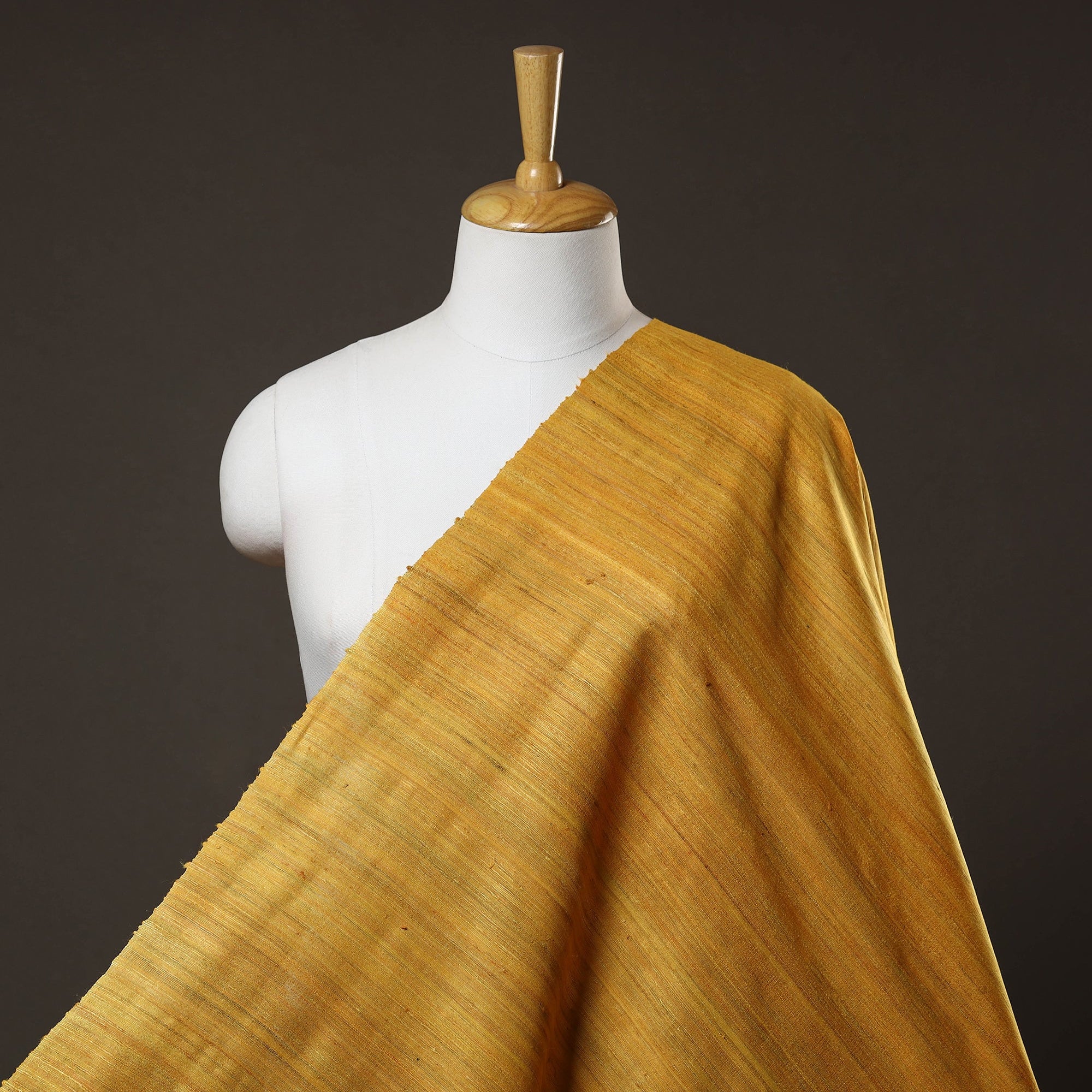 Experience the unmatched beauty with our authentic yellow handwoven tussar silk bhagalpuri fabric from Bhagalpur, Bihar. Tussar silk is known for its unique texture, sheen of silk & feel of cotton. A perfect blend of both worlds, completely suitable for all weathers. Its natural feel and lightweight texture make it a perfect choice year-round. Supporting local artisans with every purchase, discover the grace of handcrafted fabric that speaks of India's vibrant heritage.