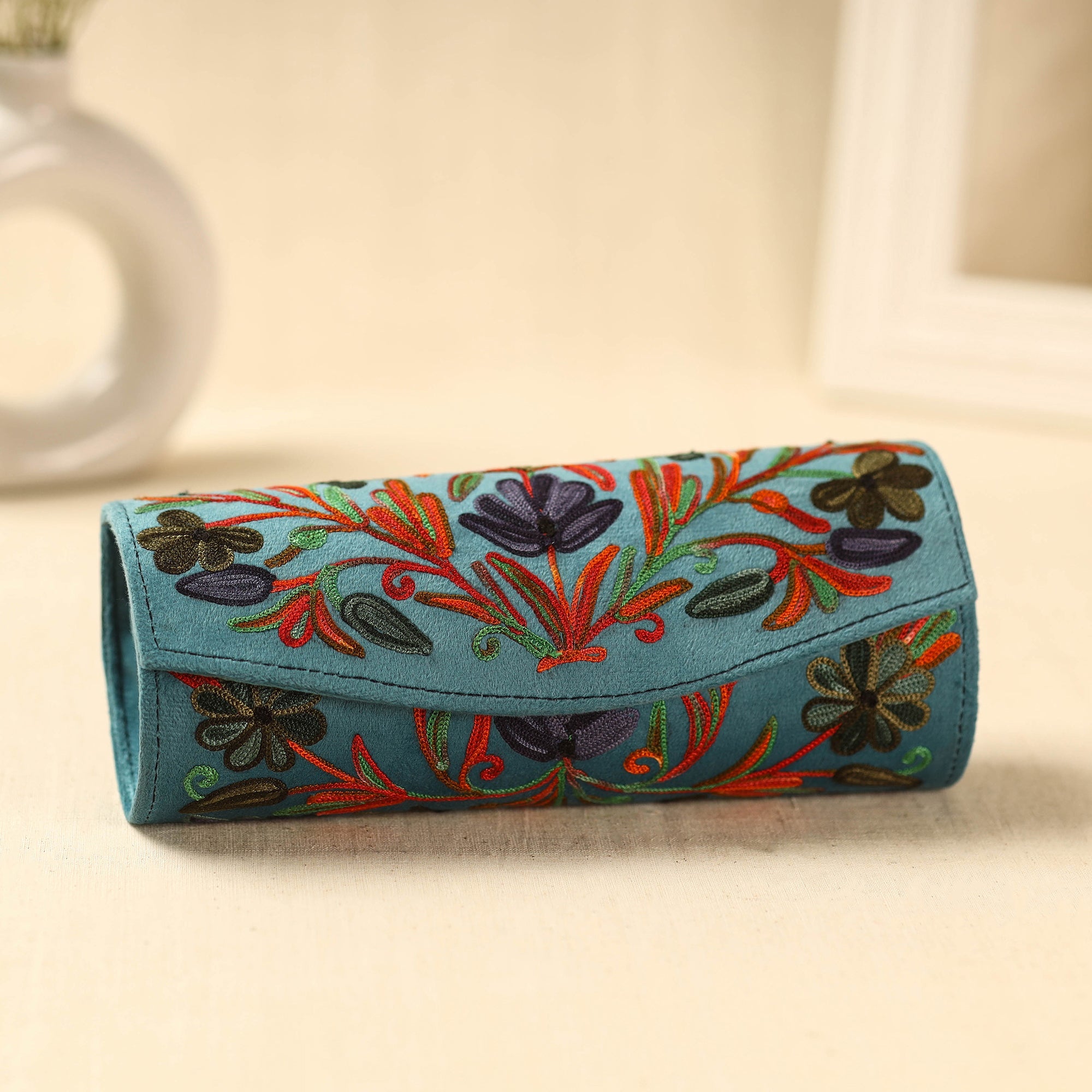 Organised your daily essentials with artisanal charm with our authentic blue kashmiri crewel hand embroidery velvet clutch/purse. This exquisite clutch purse showcases authentic kashmiri crewel embroidery, a thousand-year-old art form known for its intricate beauty. Made with rich wool & silk yarn on velvet, with an interior two zipper pocket it’s perfect for storing small essentials with a touch of elegance. Each piece supports skilled artisans in Kashmir, preserving cultural heritage through sustainable craftsmanship.
