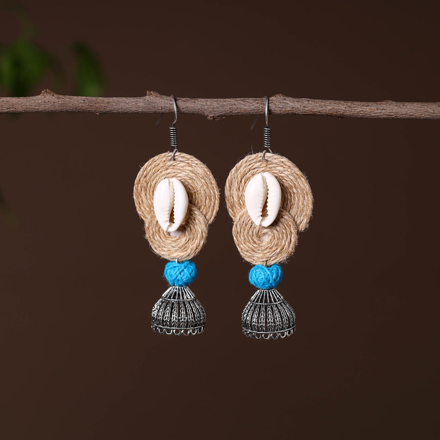 Material  These beige handcrafted german silver jute jhumki earrings. Featuring intricate jute, seashell, and thread detailing, these earrings add a unique and vibrant touch to your look. Perfect for casual wear or festive occasions.