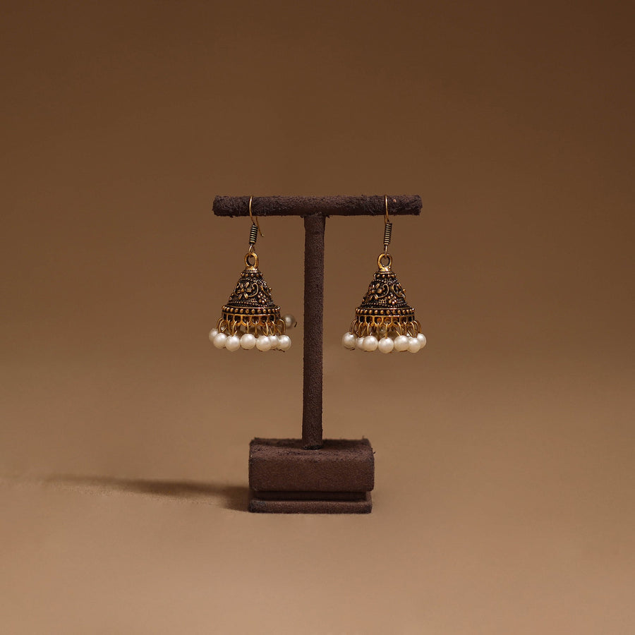 Add a unique flair to your outfit with these handmade german silver jhumki earrings. Beads detailing enhances their charm. Perfect for everyday wear or special occasions, these earrings blend traditional style with a graceful touch.