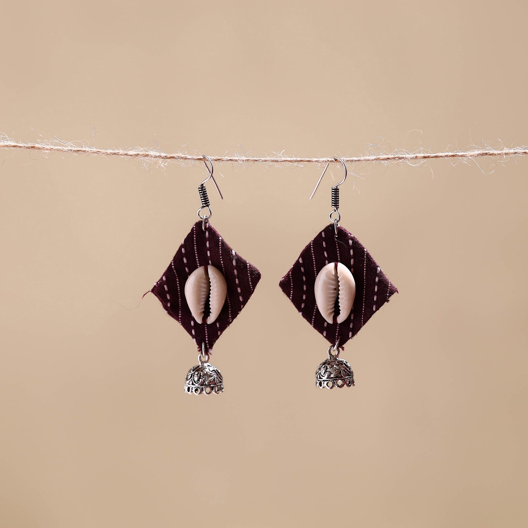 Embrace vintage charm with our maroon antique fabart german silver handcrafted earrings. Crafted to the classic beauty of oxidised silver, these earrings feature an intricate oxidised finish that enhances their timeless appeal. A perfect pair of german silver fabric earrings for everyday fashion. It is a very versatile pair that works with various outfits like kurtas, dresses, tops, etc.