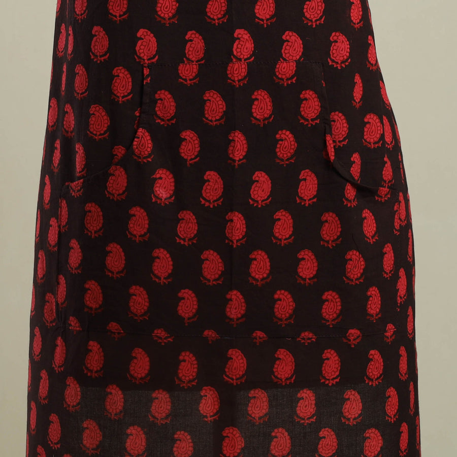 This black bagh block print cotton apron, created using traditional block printing techniques, features intricate patterns that bring a touch of heritage to your daily routine. Designed for both comfort and style, it includes adjustable straps for a personalized fit and a front pocket for added convenience. Whether you're cooking, baking, or grilling, this apron offers ease of movement while keeping you stylish.