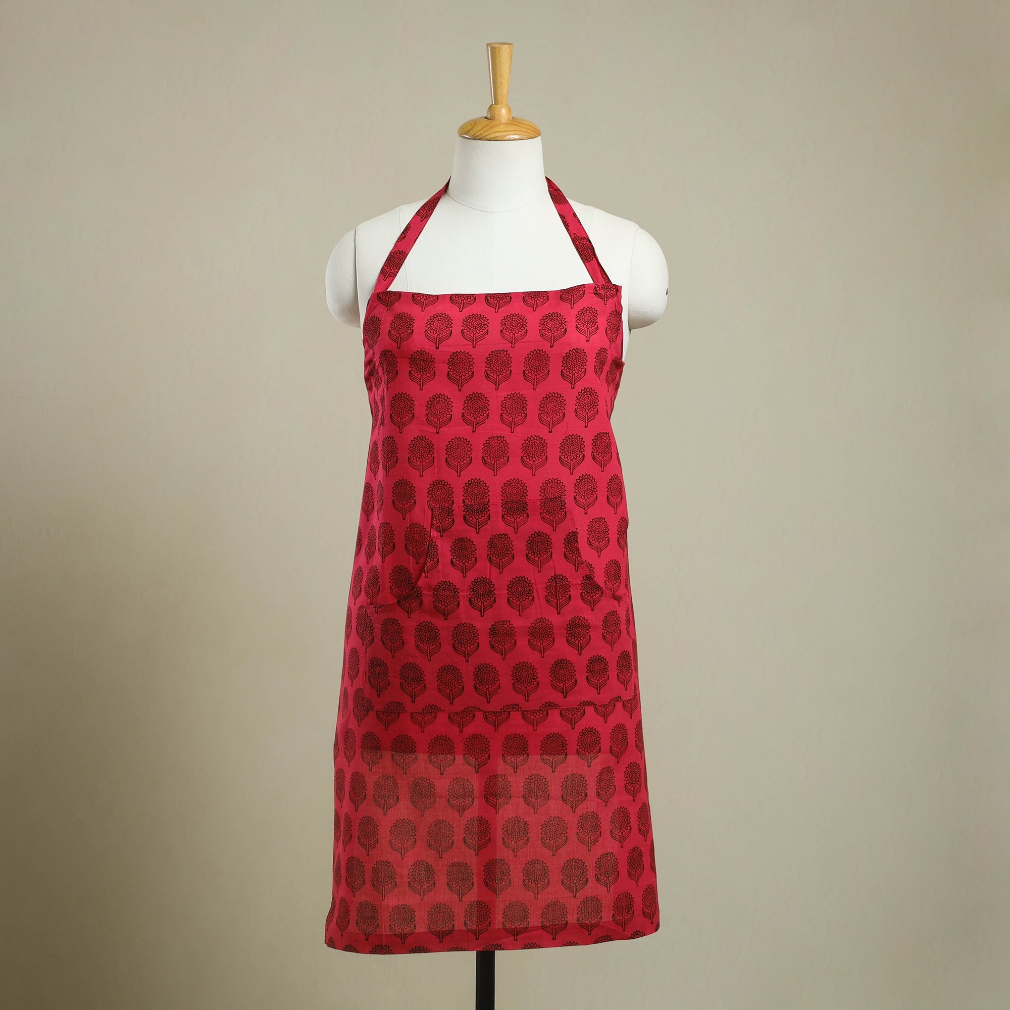 This red bagh block print cotton apron, created using traditional block printing techniques, features intricate patterns that bring a touch of heritage to your daily routine. Designed for both comfort and style, it includes adjustable straps for a personalized fit and a front pocket for added convenience. Whether you're cooking, baking, or grilling, this apron offers ease of movement while keeping you stylish.