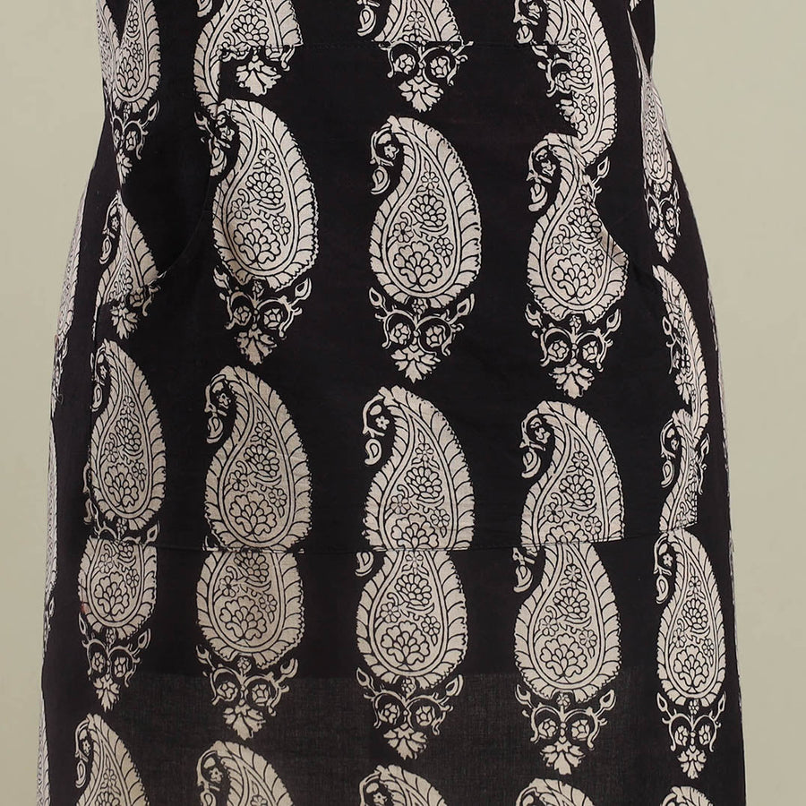 This black bagh block print cotton apron, created using traditional block printing techniques, features intricate patterns that bring a touch of heritage to your daily routine. Designed for both comfort and style, it includes adjustable straps for a personalized fit and a front pocket for added convenience. Whether you're cooking, baking, or grilling, this apron offers ease of movement while keeping you stylish.