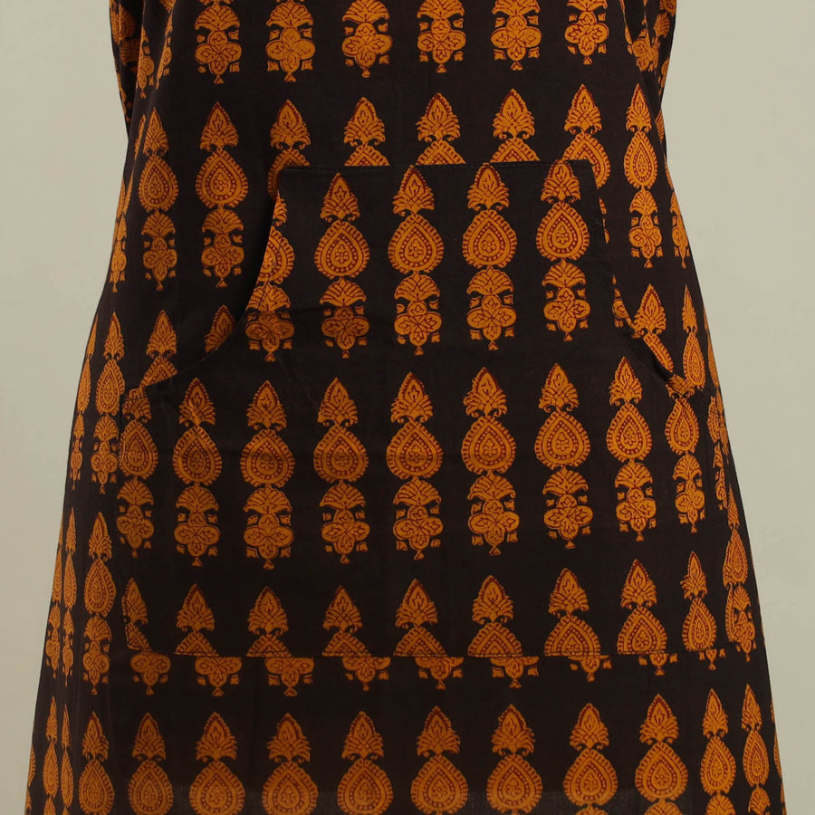 This orange bagh block print cotton apron, created using traditional block printing techniques, features intricate patterns that bring a touch of heritage to your daily routine. Designed for both comfort and style, it includes adjustable straps for a personalized fit and a front pocket for added convenience. Whether you're cooking, baking, or grilling, this apron offers ease of movement while keeping you stylish.