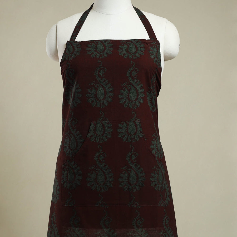 This brown bagh block print cotton apron, created using traditional block printing techniques, features intricate patterns that bring a touch of heritage to your daily routine. Designed for both comfort and style, it includes adjustable straps for a personalized fit and a front pocket for added convenience. Whether you're cooking, baking, or grilling, this apron offers ease of movement while keeping you stylish.