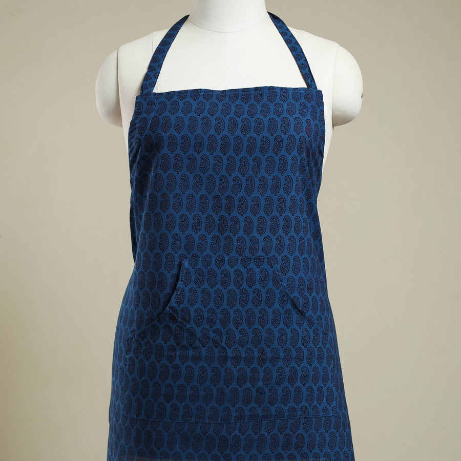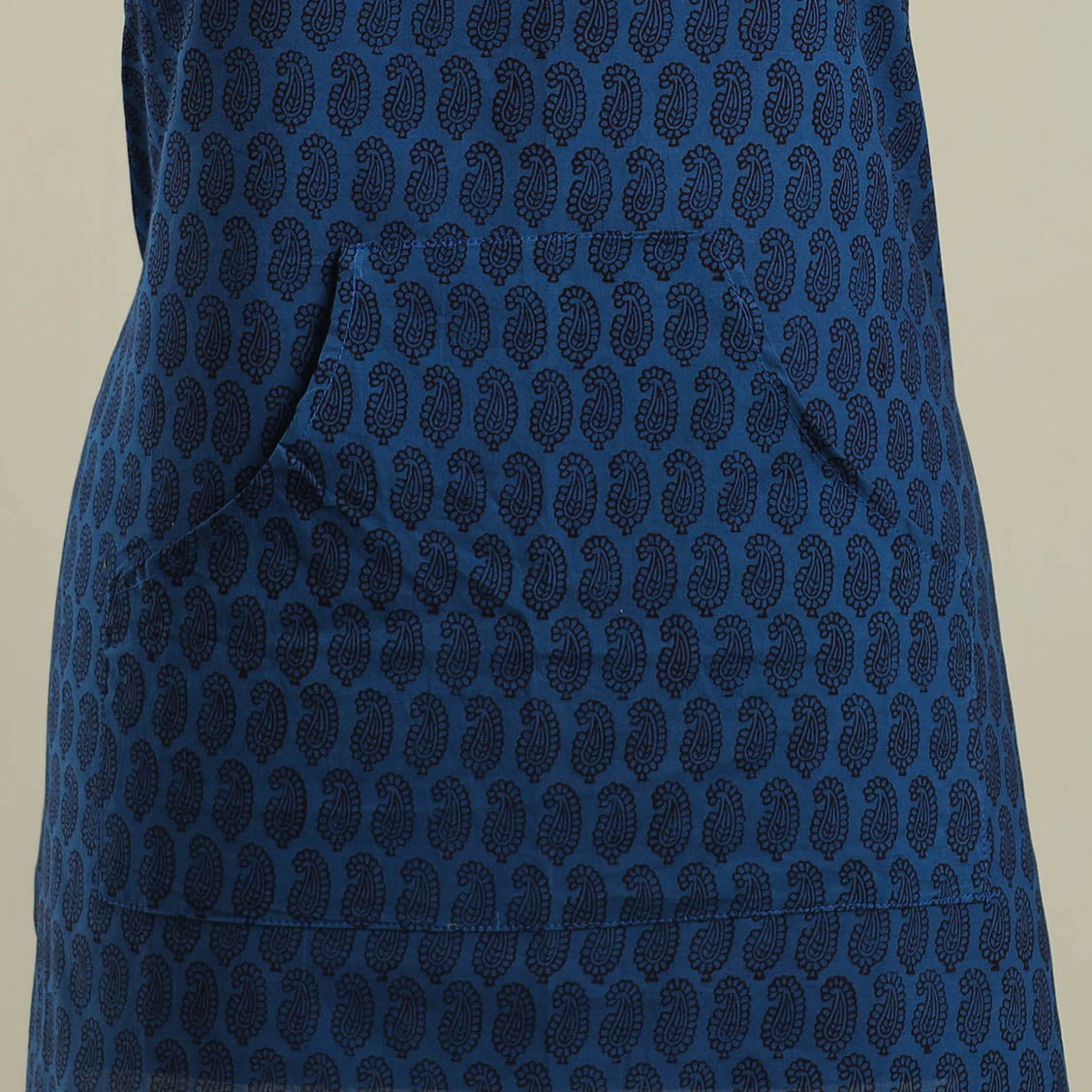 This blue bagh block print cotton apron, created using traditional block printing techniques, features intricate patterns that bring a touch of heritage to your daily routine. Designed for both comfort and style, it includes adjustable straps for a personalized fit and a front pocket for added convenience. Whether you're cooking, baking, or grilling, this apron offers ease of movement while keeping you stylish.