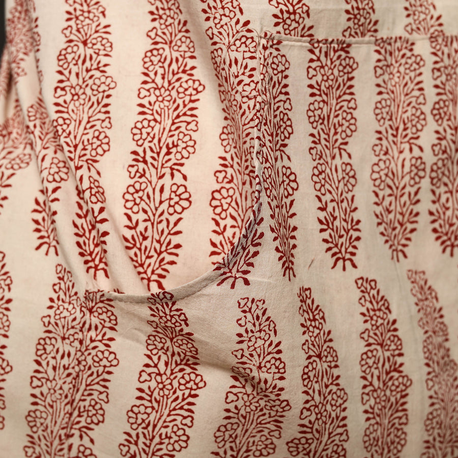 This beige bagh print cotton apron with pocket, crafted with traditional bagh block printing, combines cultural artistry with everyday functionality. Adorned with bagh prints, it features a convenient front pocket and adjustable straps for a comfortable fit. Perfect for cooking, baking, or grilling, this apron adds style and convenience to your kitchen essentials.