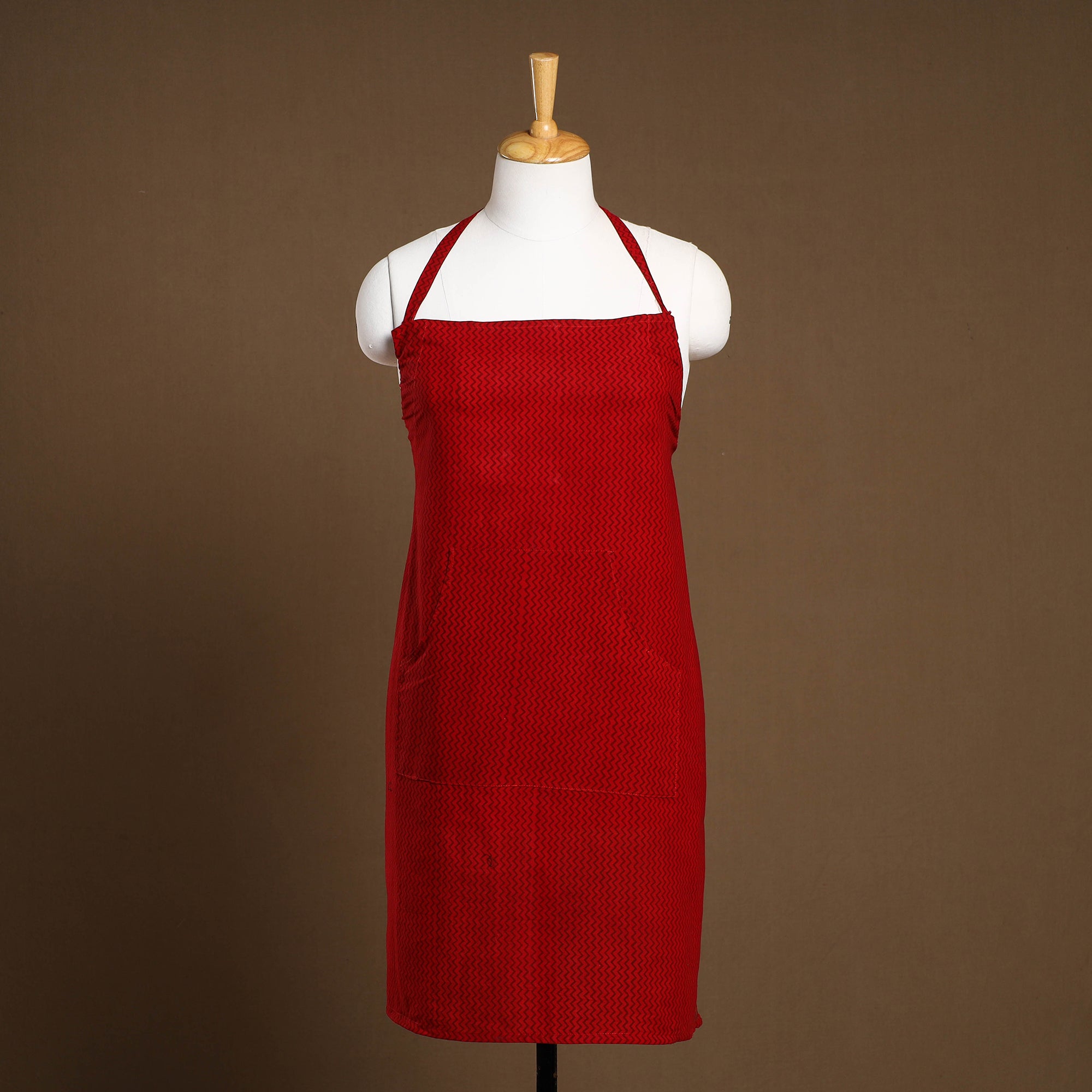 This red bagh print cotton apron with pocket, crafted with traditional block printing, combines cultural artistry with everyday functionality, it features a convenient front pocket and adjustable straps for a comfortable fit. Perfect for cooking, baking, or grilling, this apron adds style and convenience to your kitchen essentials.