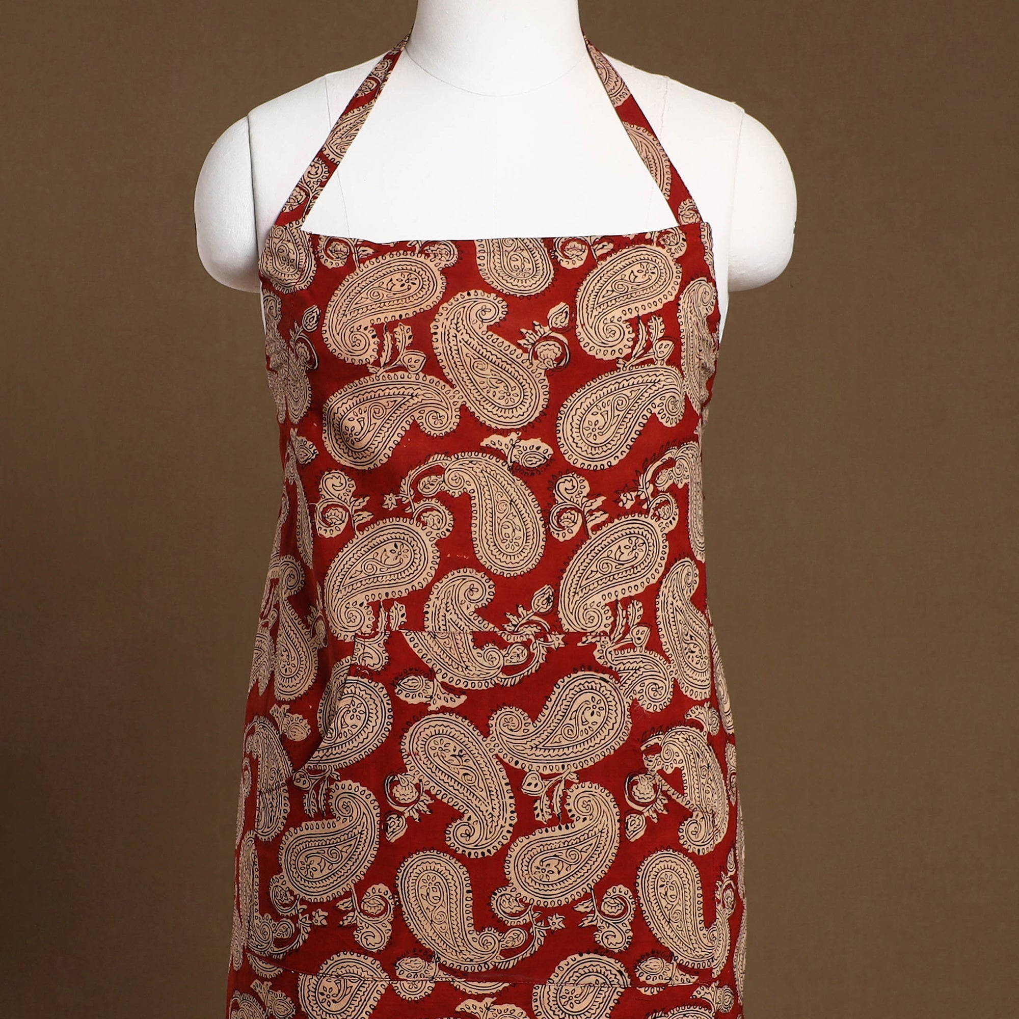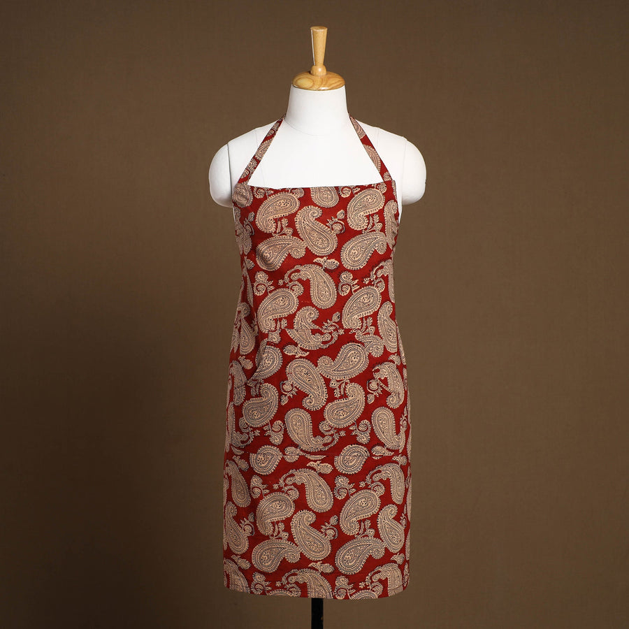 This maroon bagh print cotton apron with pocket, crafted with traditional block printing, combines cultural artistry with everyday functionality, it features a convenient front pocket and adjustable straps for a comfortable fit. Perfect for cooking, baking, or grilling, this apron adds style and convenience to your kitchen essentials.