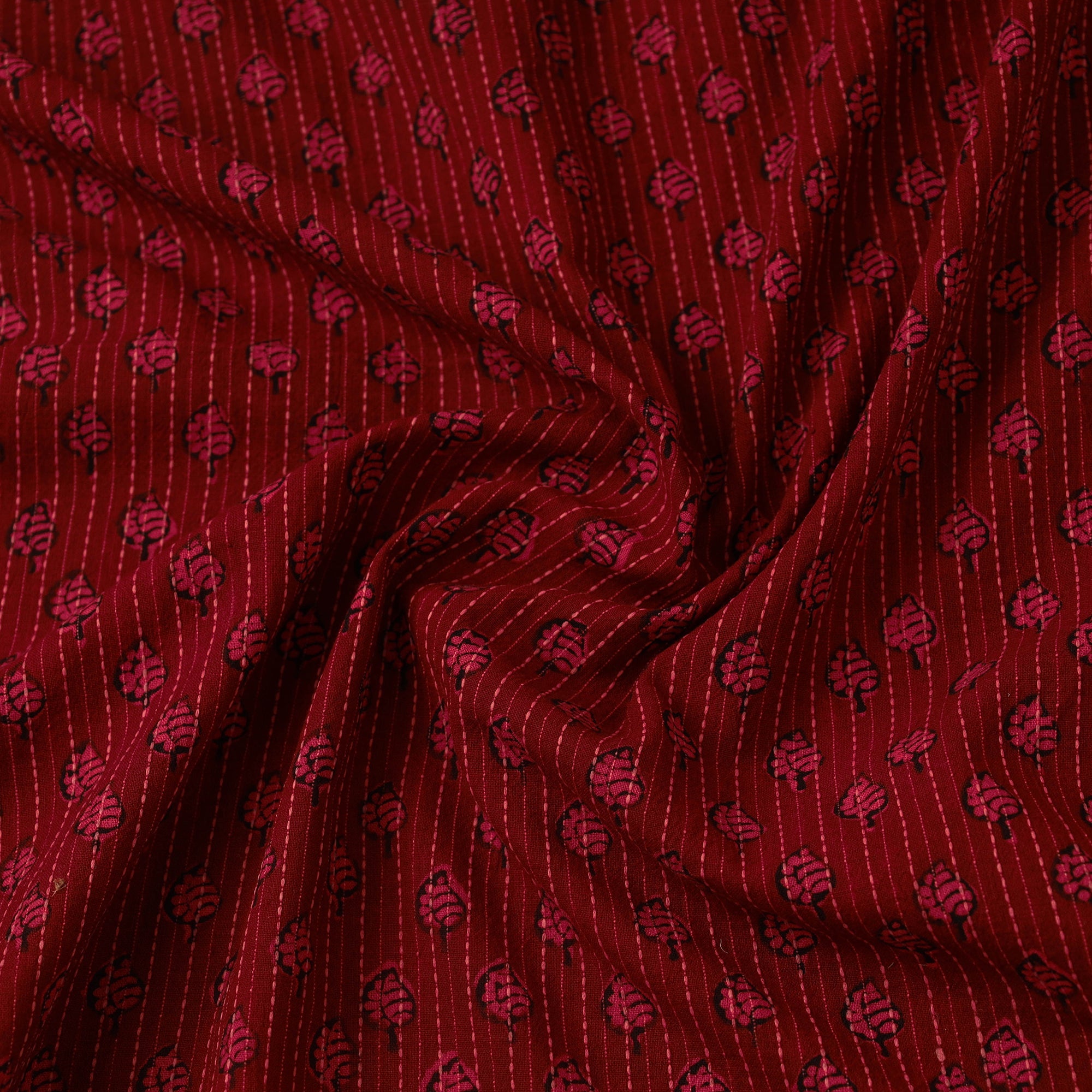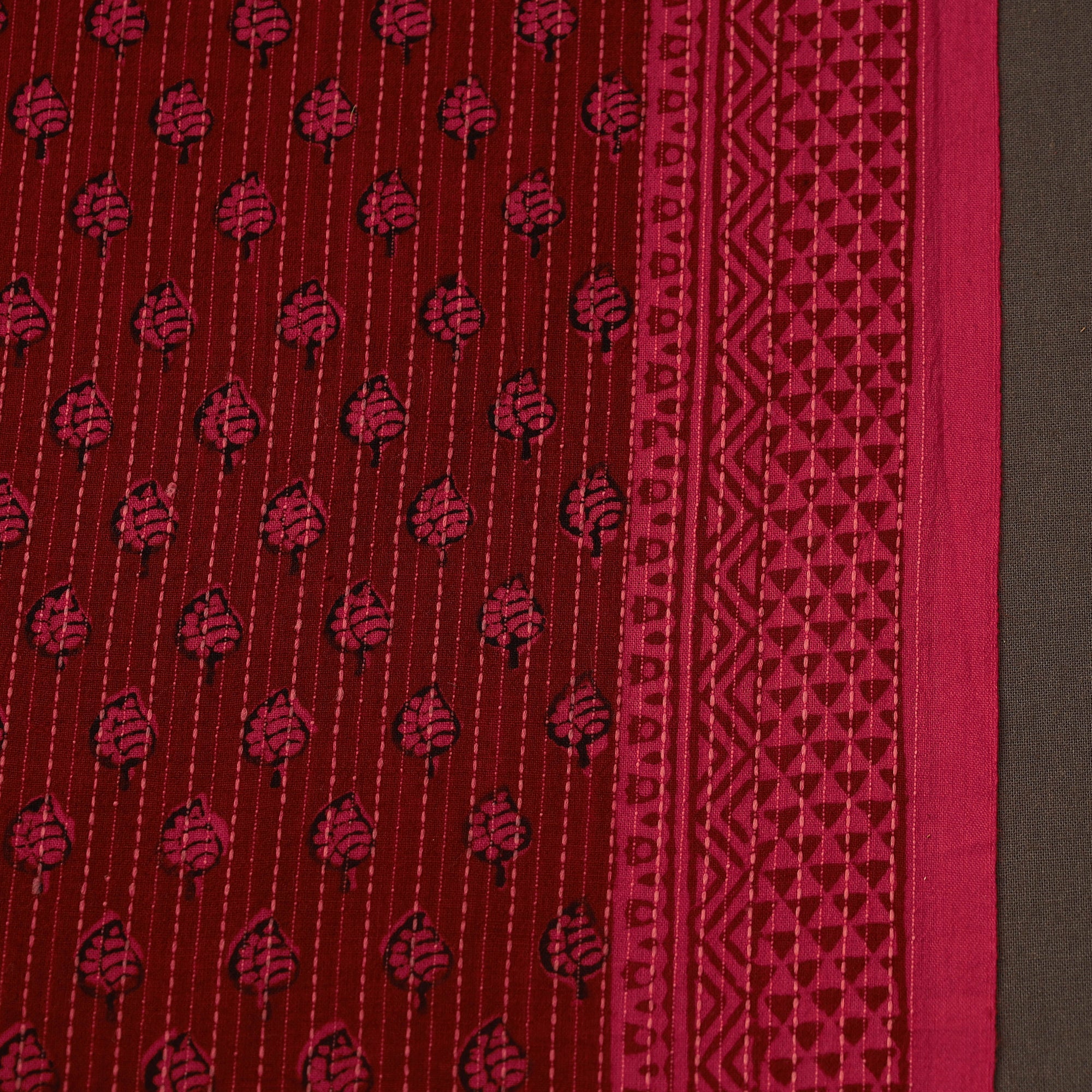 This red bagh print fabric is hand block printed by master artisan Umar Faruk Khatri from Bagh, Madhya Pradesh. Crafted using natural dyes and traditional techniques, it features Kantha- stitch detailing printed on cotton. Ideal for garments, accessories, or home décor, this heritage-inspired textile combines traditional aesthetics with everyday usability.