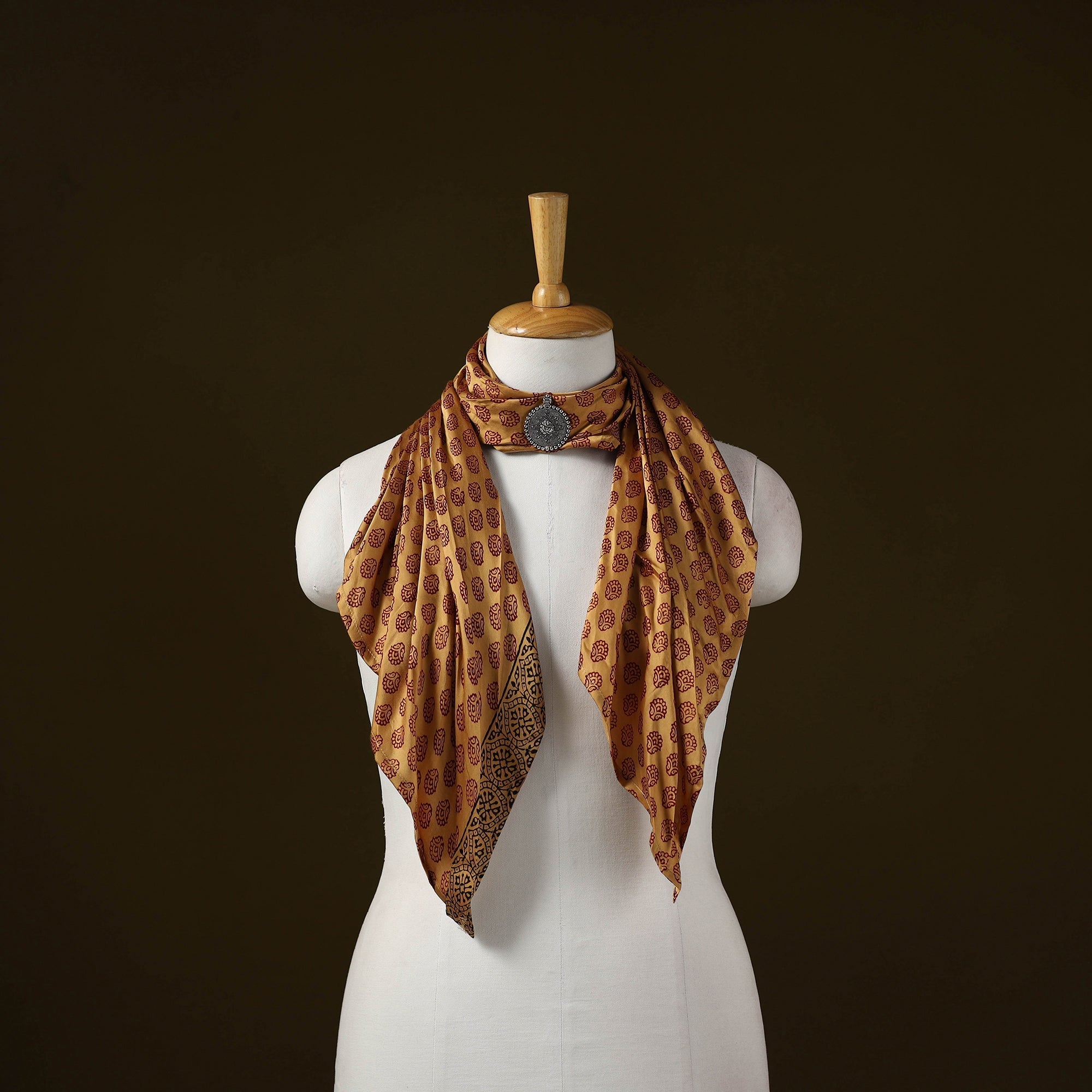 Bagh hand block print german silver brooch scarf is a versatile accessory designed for effortless styling. Soft and comfortable to wear, it features detailed block-printed motifs that add a distinctive touch. Made using modal silk, the scarf offers a balanced feel with a subtle sheen and a comfortable drape, making it suitable for everyday as well as occasion wear.