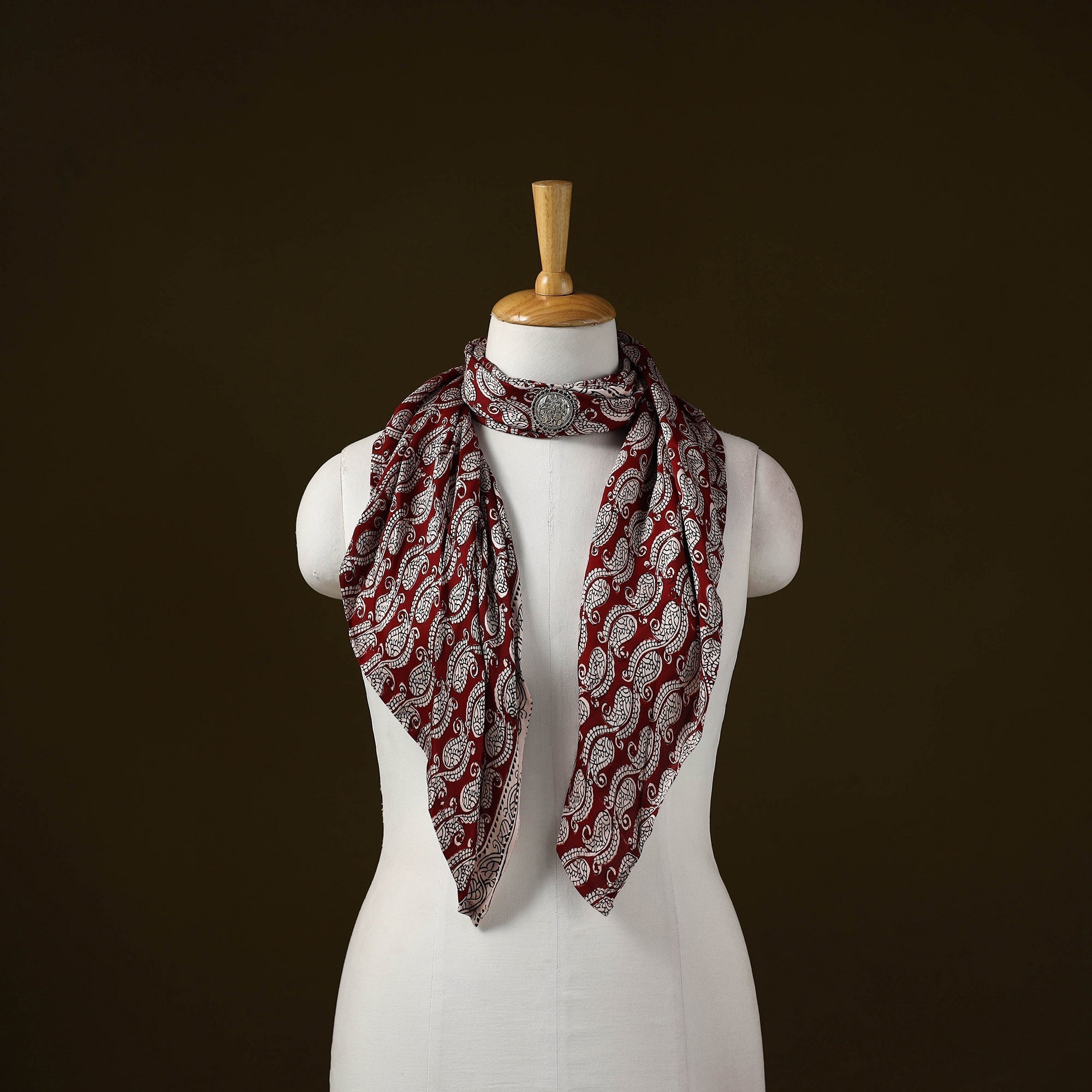 Bagh hand block print german silver brooch scarf is a versatile accessory designed for effortless styling. Soft and comfortable to wear, it features detailed block-printed motifs that add a distinctive touch. Made using modal silk, the scarf offers a balanced feel with a subtle sheen and a comfortable drape, making it suitable for everyday as well as occasion wear.