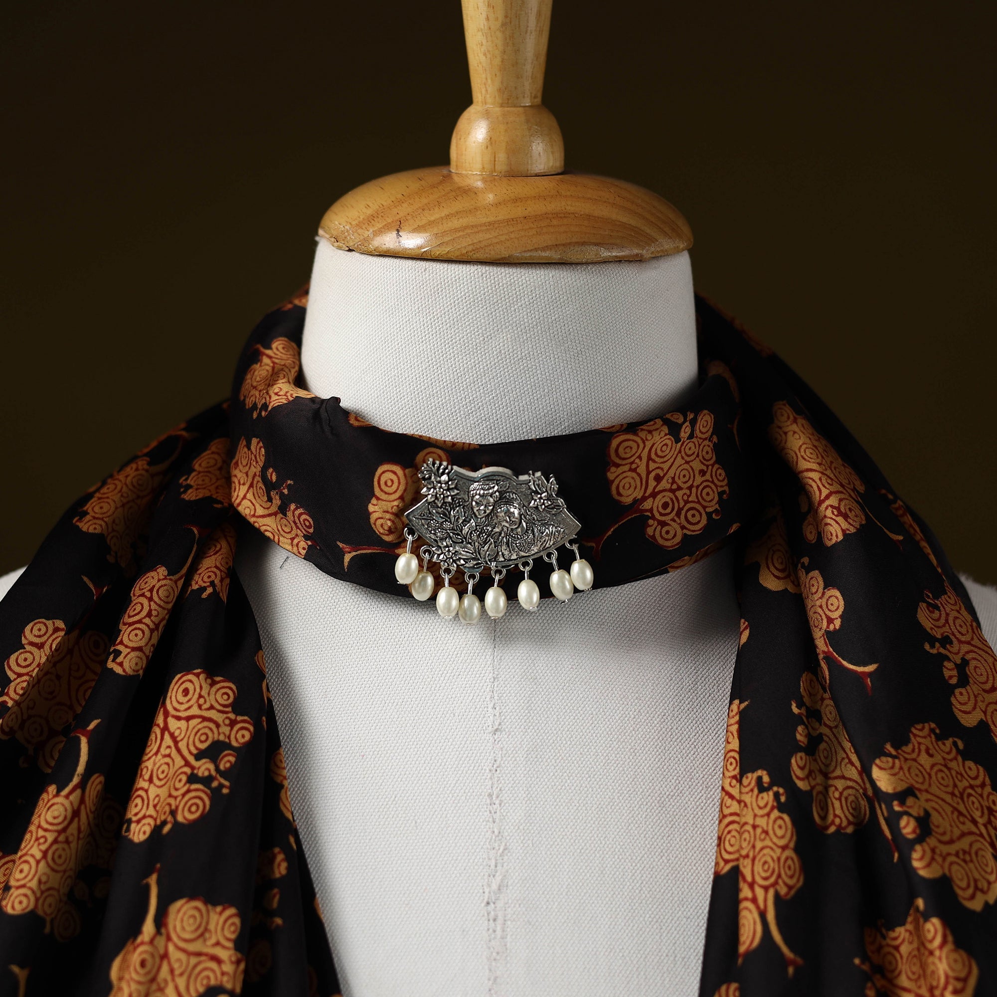 Bagh hand block print german silver brooch scarf is a versatile accessory designed for effortless styling. Soft and comfortable to wear, it features detailed block-printed motifs that add a distinctive touch. Made using modal silk, the scarf offers a balanced feel with a subtle sheen and a comfortable drape, making it suitable for everyday as well as occasion wear.