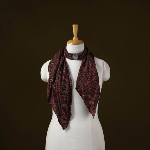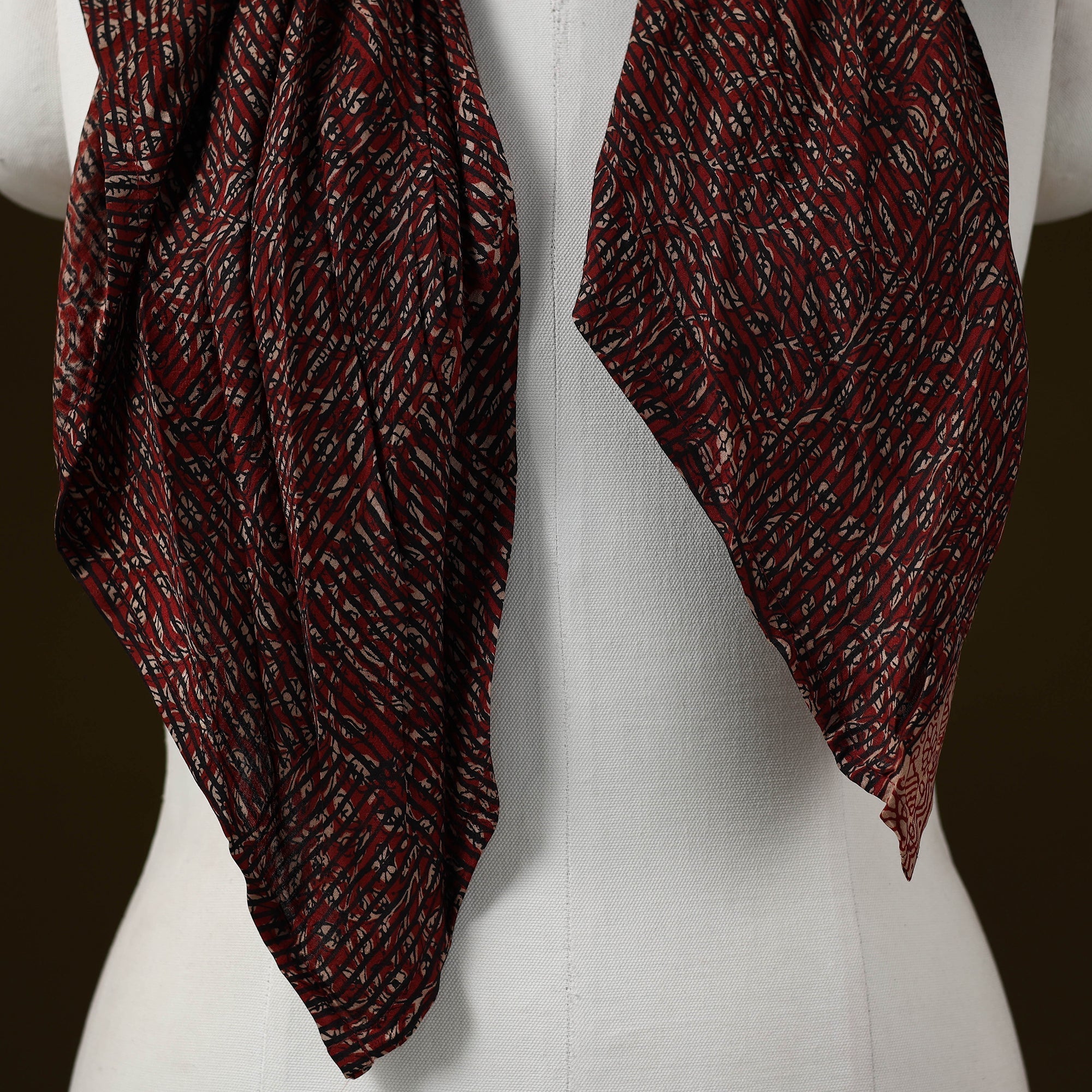 Maroon - Bagh Block Print Modal Silk Brooch Scarf 22