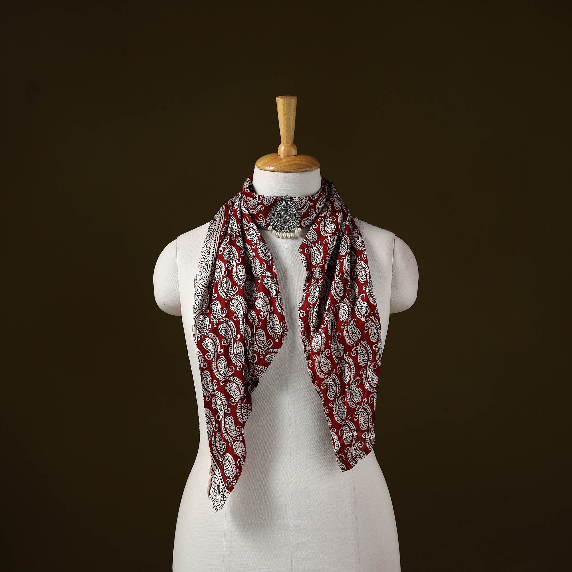 Bagh Block Print Modal Silk Pendant Necklace Scarf 79