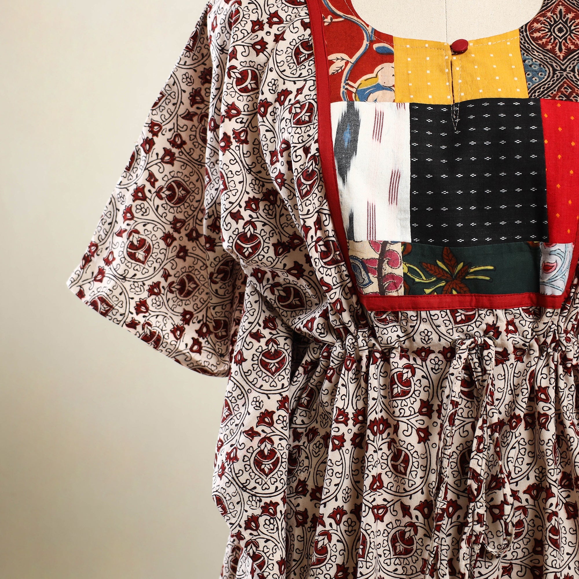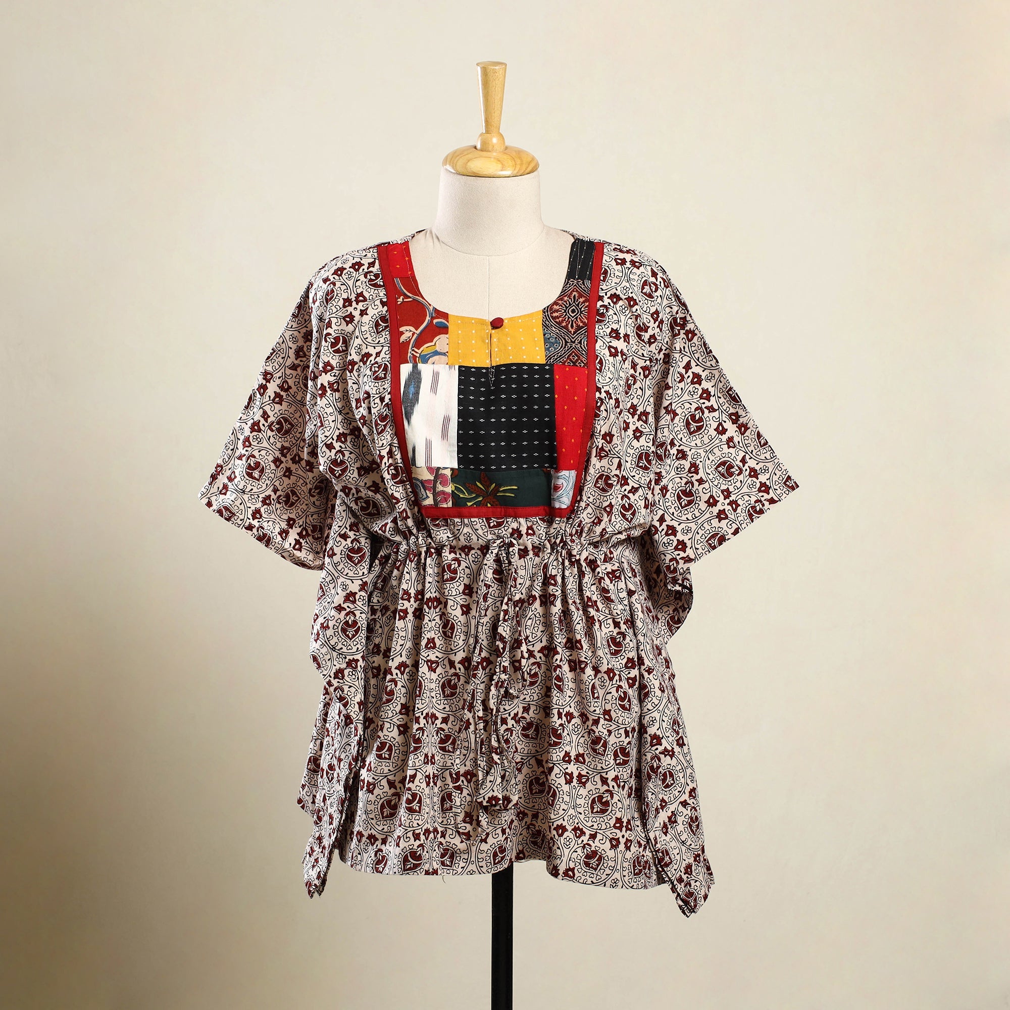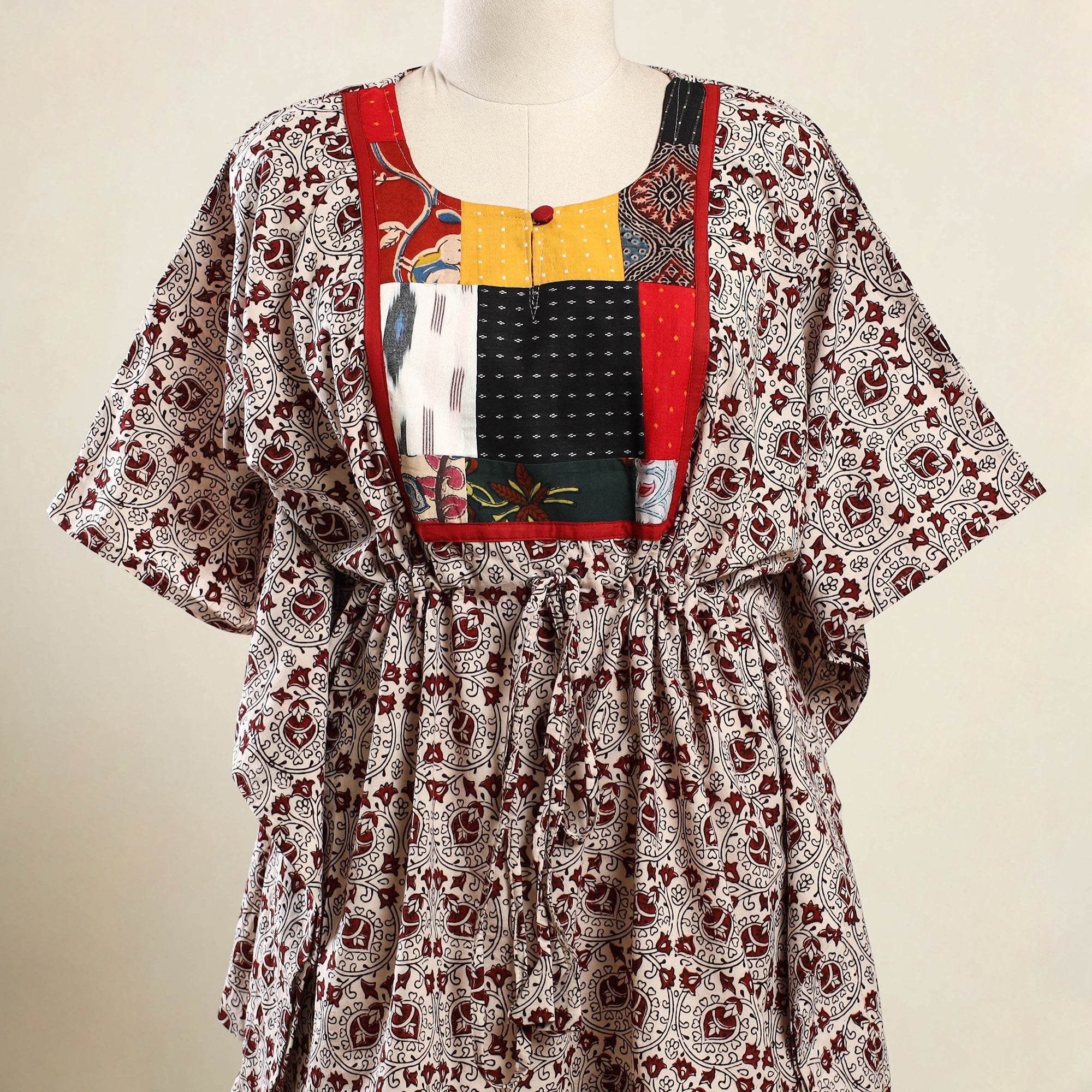Enjoy effortless comfort in this bagh block print patchwork kaftan. Made from soft, breathable cotton, it features a drawstring waist for an adjustable fit. Perfect for lounging at home or stepping out for casual outings, this kaftan offers a relaxed feel with just the right touch of style.