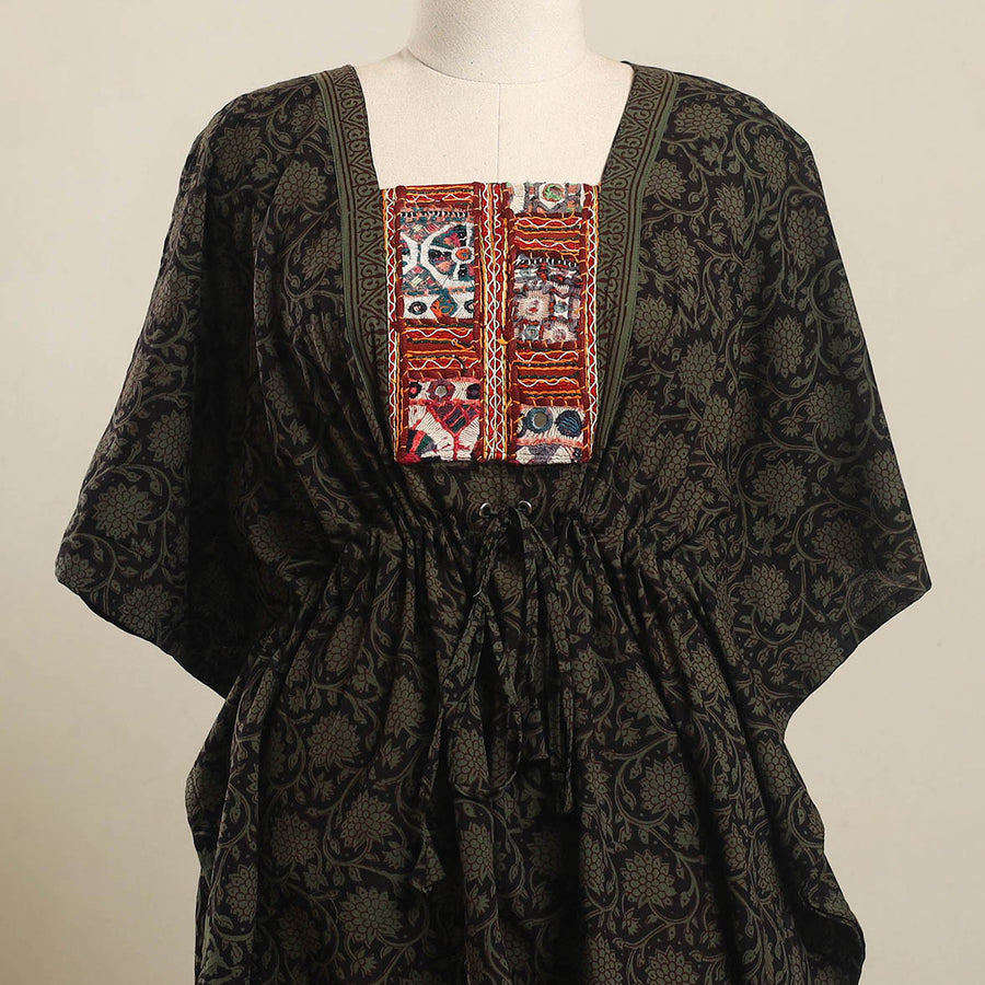 Elevate your everyday wardrobe with this airy multicolor bagh block print cotton kaftan. Designed for ease, it comes with flowy sleeves and a relaxed fit that lets you move freely. The intricate desert thread embroidery adds a touch of tradition, while the soft cotton fabric ensures all day breathability. Whether you’re strolling along the shore or relaxing at home, this kaftan is the perfect blend of style and comfort.