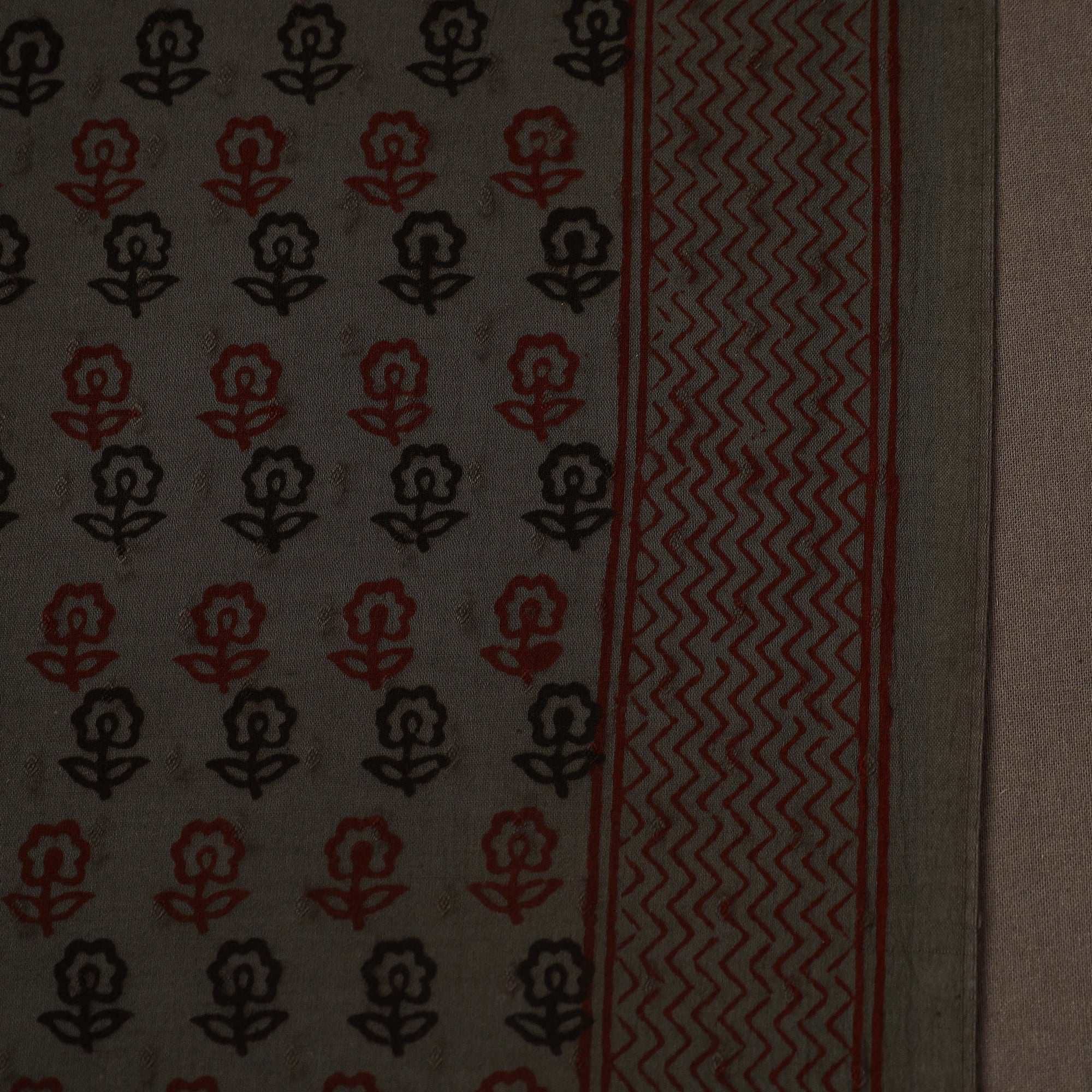 This grey bagh hand block print fabric is created by master artisan Umar Faruk Khatri from Bagh, Madhya Pradesh. Made using natural dyes on striped cotton, it features traditional geometric motifs that add a unique charm. Ideal for making kurtas, dresses, or home decor.