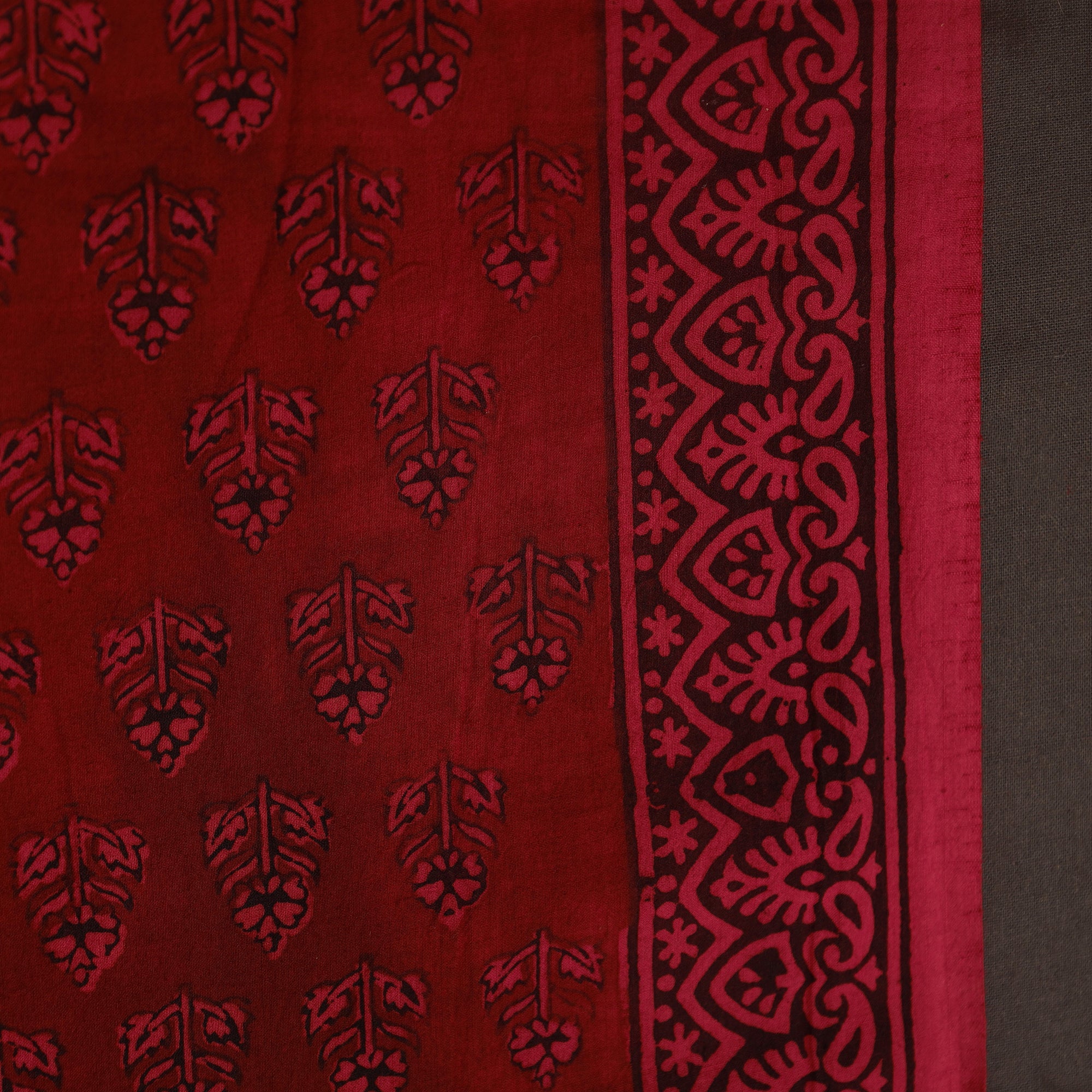Bagh layouts are dramatic with the use of black and red alternately on a white background. Its production process is manually painstaking. Though the techniques and designs are age-old the prints retain their contemporary appeal.