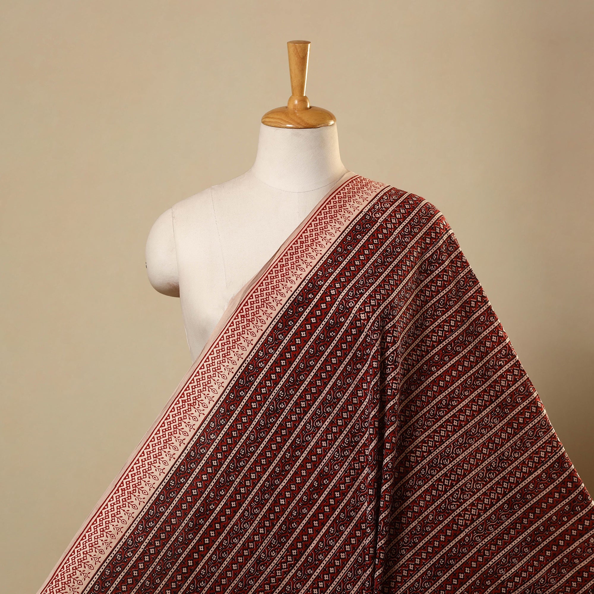This red bagh print fabric is hand block printed by master artisan Umar Faruq Khatri from Bagh, Madhya Pradesh. Crafted using natural dyes and traditional techniques, it features geometric motifs on cotton. Ideal for garments, accessories, or home décor, this fabric reflects the essence of heritage with everyday usability.
