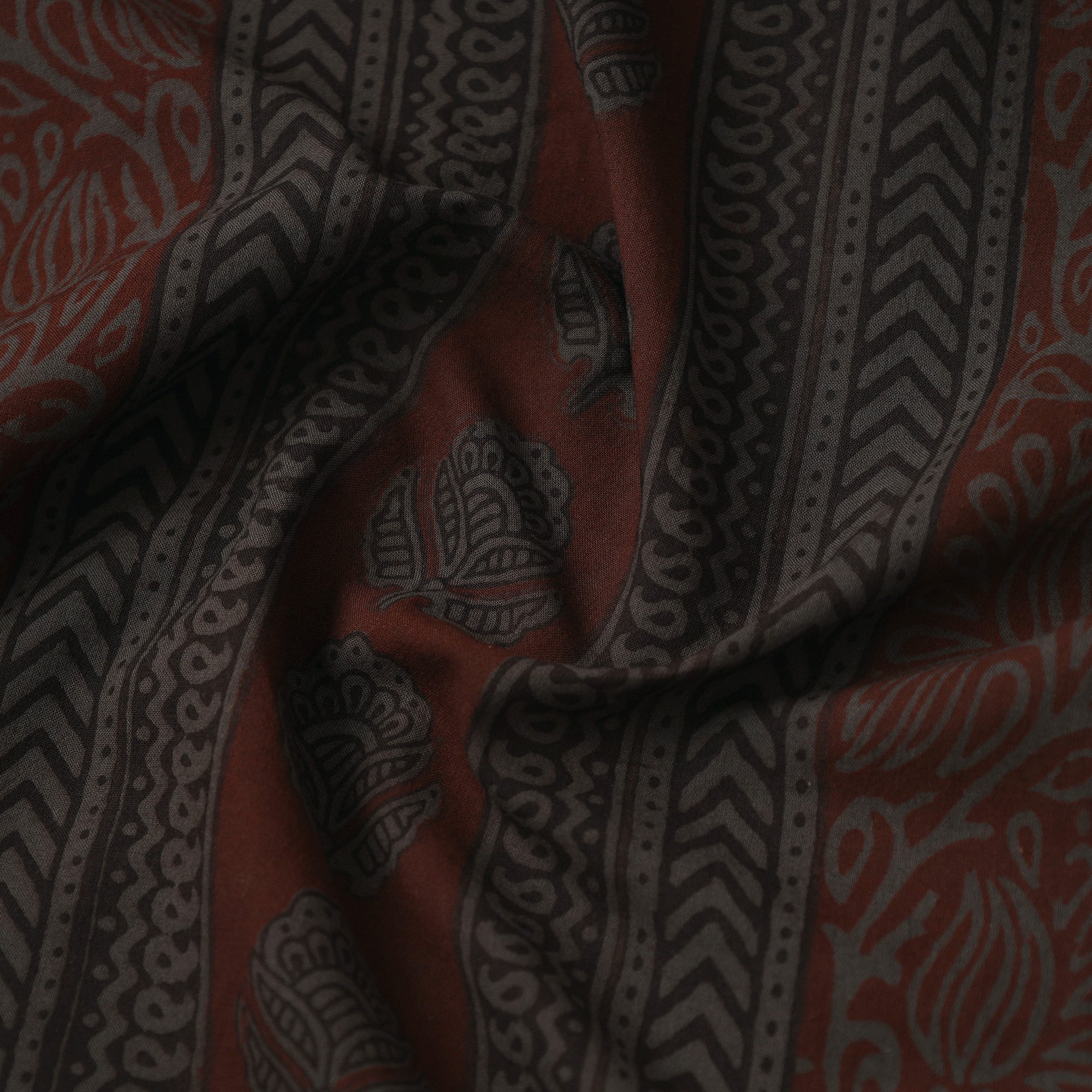 This grey bagh print fabric is hand block printed by master artisan Umar Faruq Khatri from Bagh, Madhya Pradesh. Crafted using natural dyes and traditional techniques, it features geometric motifs on cotton. Ideal for garments, accessories, or home décor, this fabric reflects the essence of heritage with everyday usability.