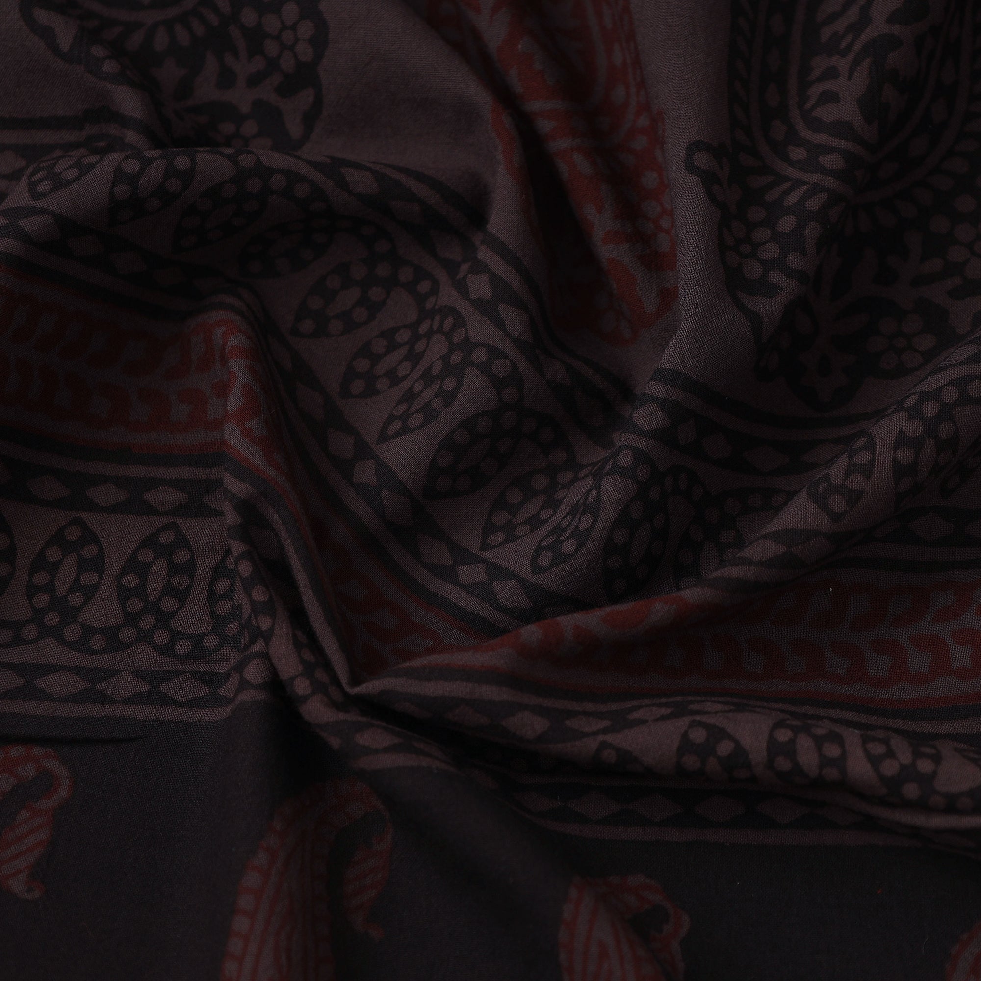 Bagh layouts are dramatic with the use of black and red alternately on a white background. Its production process is manually painstaking. Though the techniques and designs are age-old the prints retain their contemporary appeal.