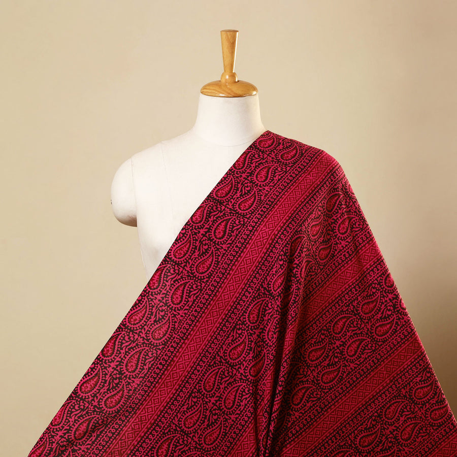 This pink bagh print fabric is hand block printed by master artisan Umar Faruq Khatri from Bagh, Madhya Pradesh. Crafted using natural dyes and traditional techniques, it features geometric motifs on cotton. Ideal for garments, accessories, or home décor, this fabric reflects the essence of heritage with everyday usability.