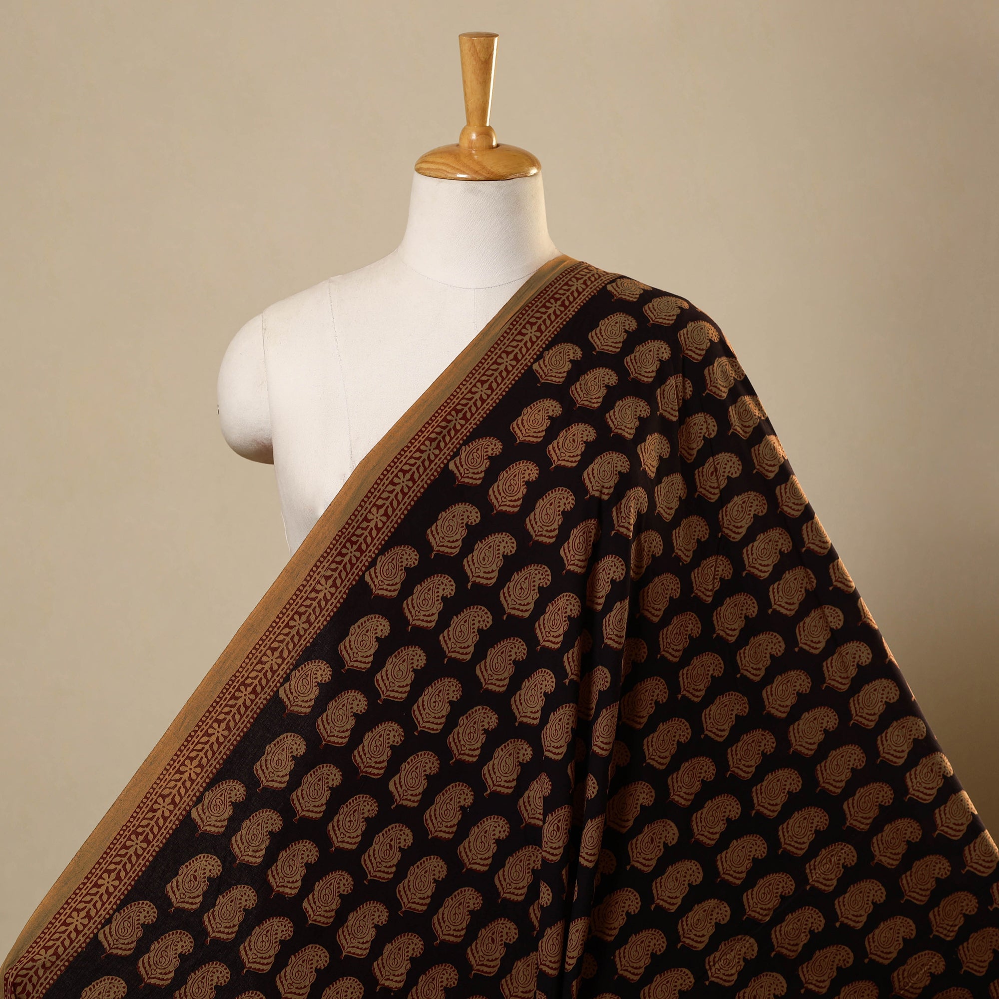 Black - Bagh Hand Block Print Natural Dyed Cotton Fabric 75