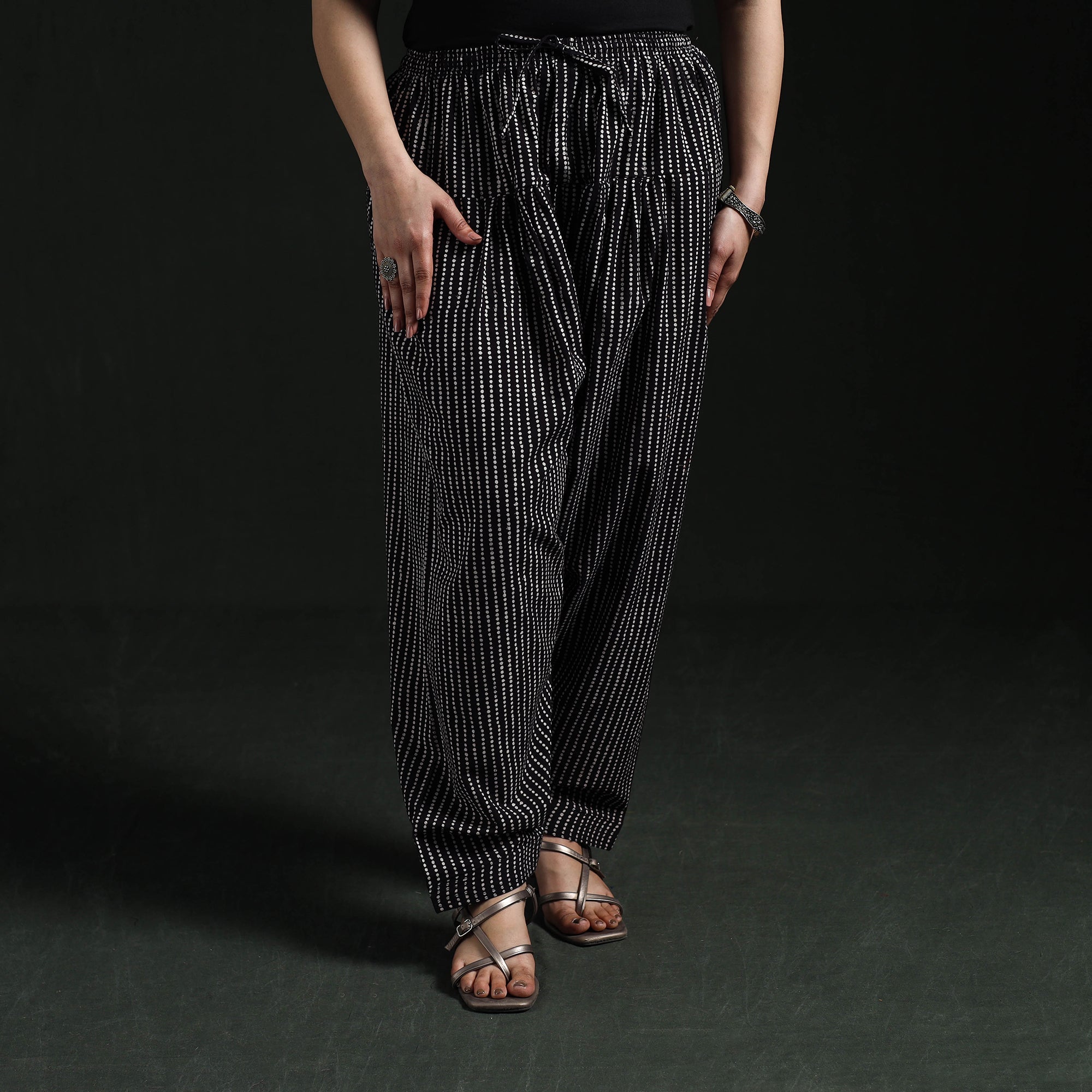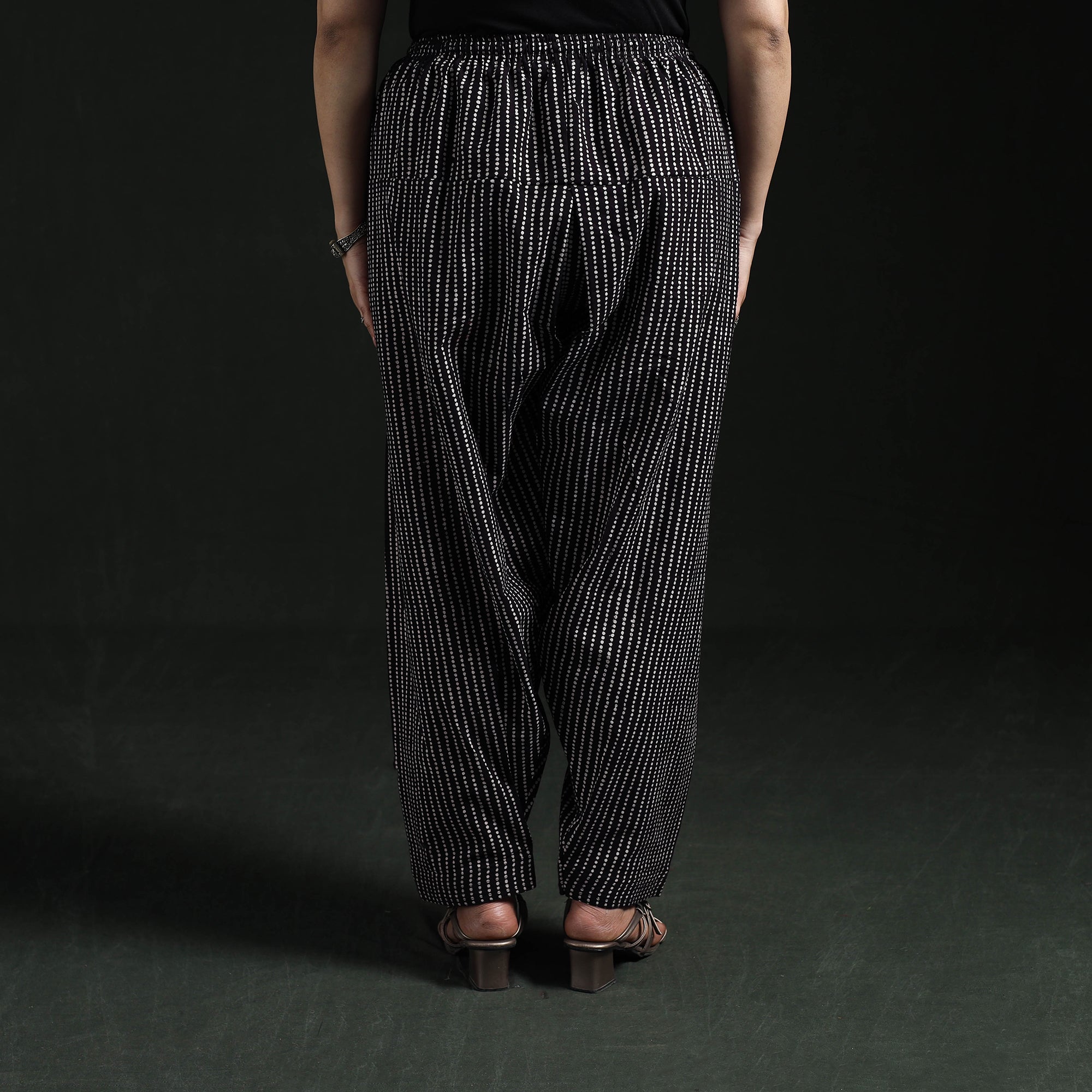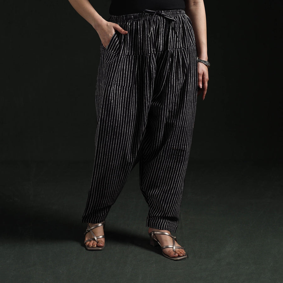| Material | Bagh women’s salwar is crafted using traditional hand block printing and natural dyeing techniques from Madhya Pradesh, a craft that is over 300 years old. Made from pure cotton, it features an elasticated waist, drawstring and side pocket to ensure all-day comfort and practicality. Complete the look by pairing it with your favourite kurta. |