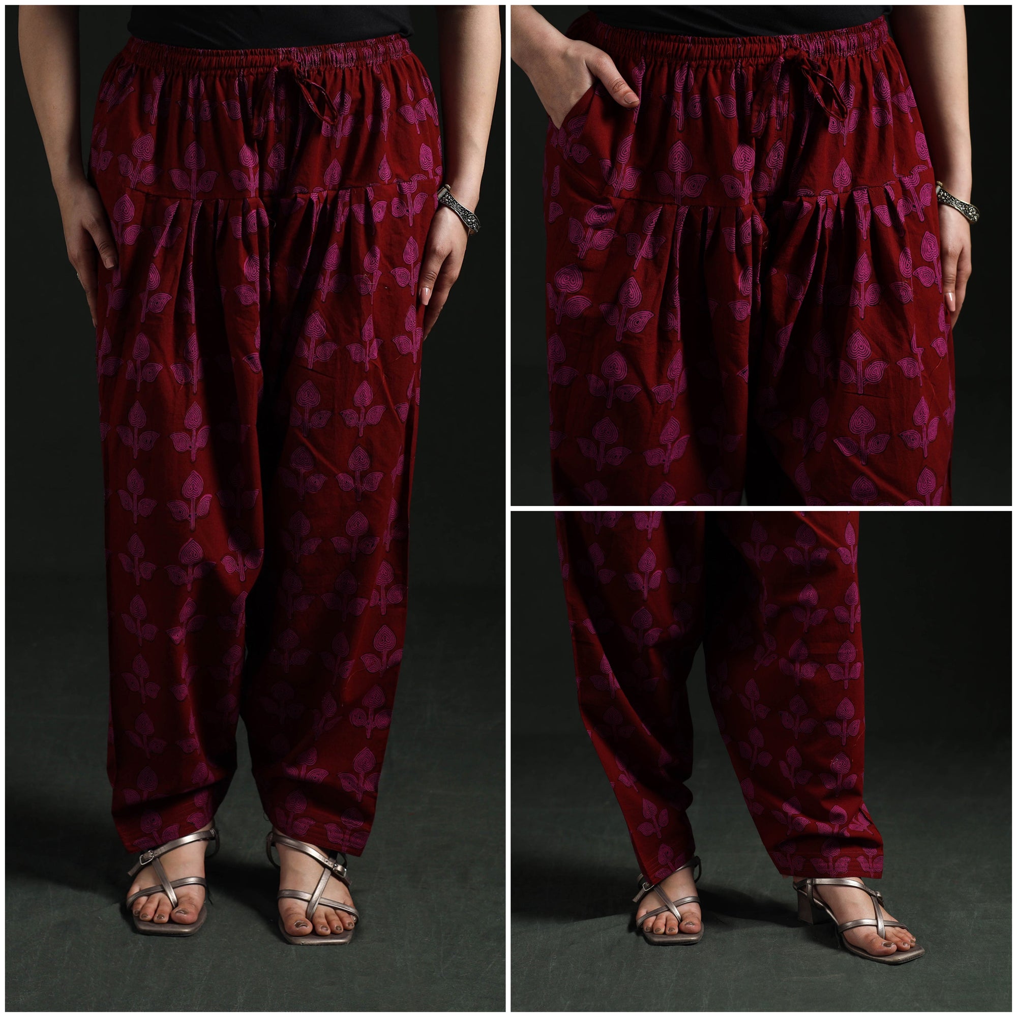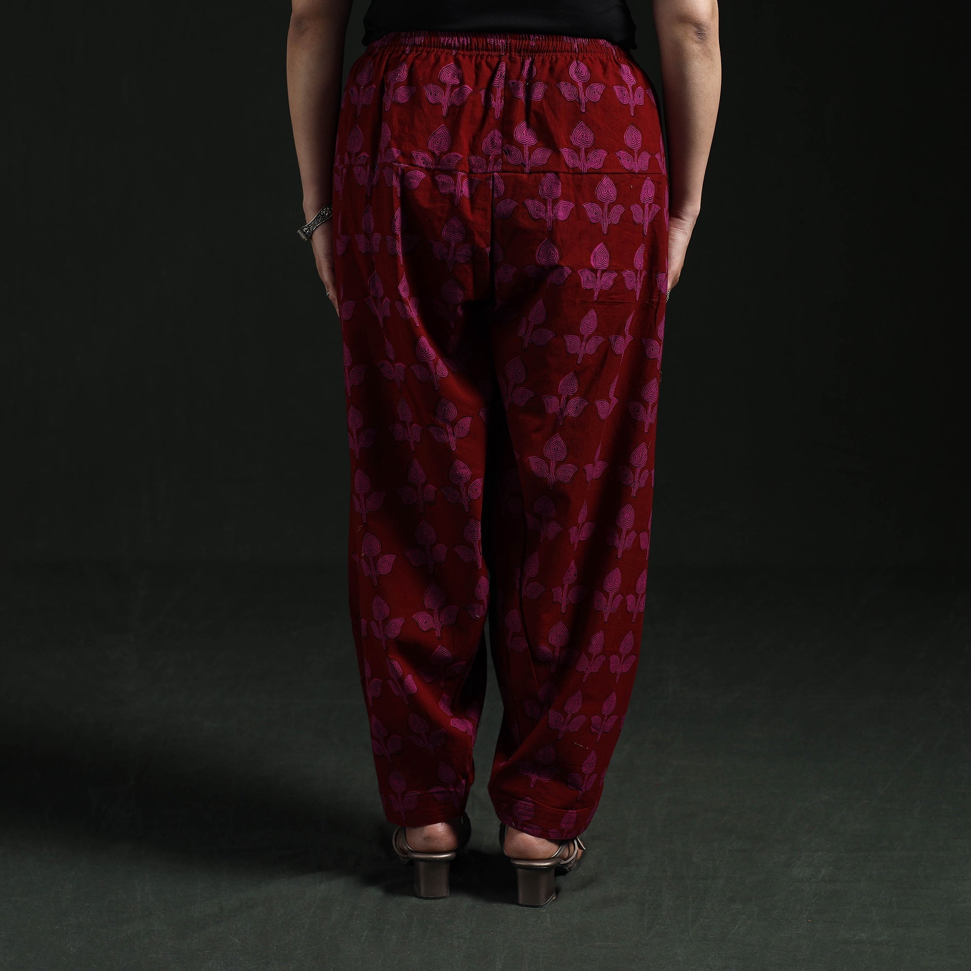 | Material | Bagh women’s salwar is crafted using traditional hand block printing and natural dyeing techniques from Madhya Pradesh, a craft that is over 300 years old. Made from pure cotton, it features an elasticated waist, drawstring and side pocket to ensure all-day comfort and practicality. Complete the look by pairing it with your favourite kurta. |