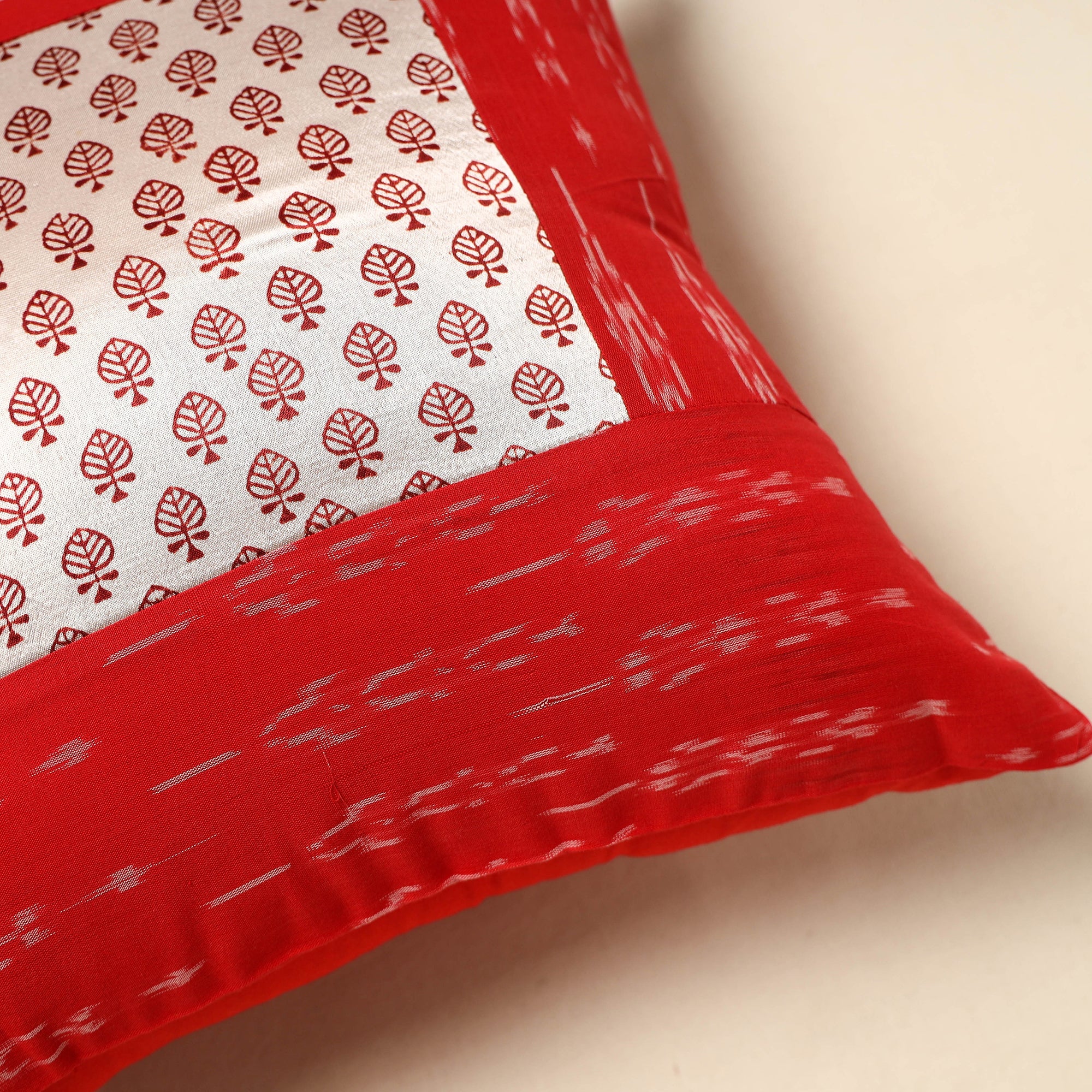 Elevate your space with this red Ikat cushion cover made from soft cotton and detailed with bagh modal silk patchwork. Expertly created by artisans, its vibrant patterns and rich textures bring a timeless touch to sofas, cozy corners, and bedrooms chairs, or as a thoughtful gift.