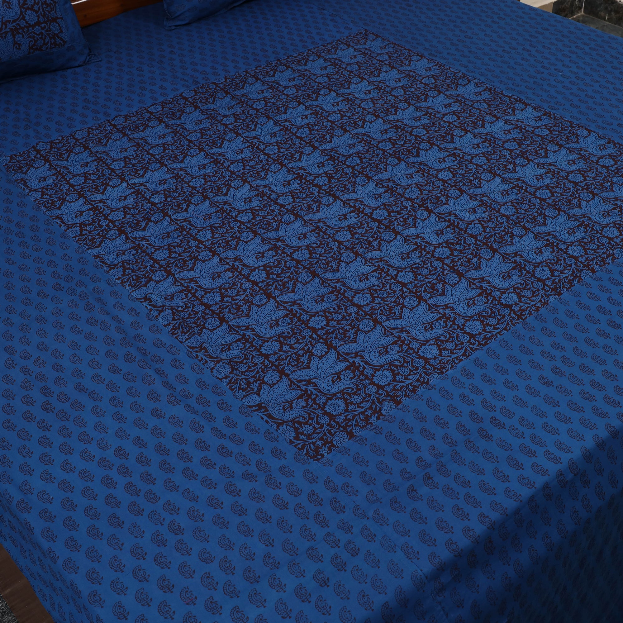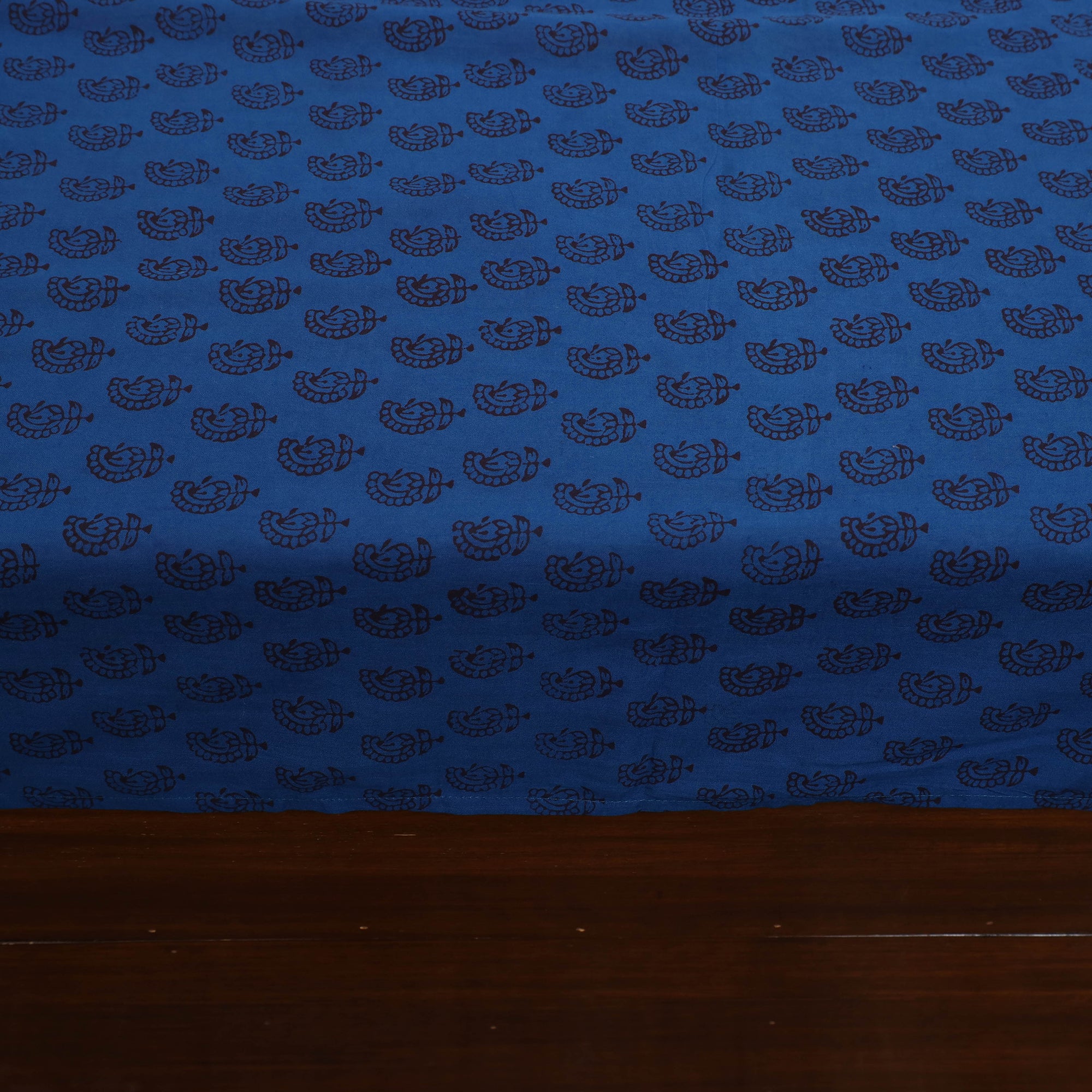 This blue cotton bedsheet set features an elegant display of bagh block print, blending traditional techniques with a modern aesthetic. Crafted from breathable cotton, it offers lasting comfort and durability. The intricate patchwork design adds an artisanal appeal to your space. The set includes one double bedsheet and two matching pillow covers, perfect for elevating your home decor.