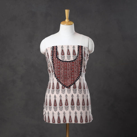Embrace the rich tradition this white bagh print cotton kurta material with patchwork, crafted by skilled artisans from Bagh, Madhya Pradesh. This fabric features intricate block-print that reflect India's cultural heritage. Known for its bold colors and detailed prints, making it an ideal choice for those who value both tradition and sustainability.