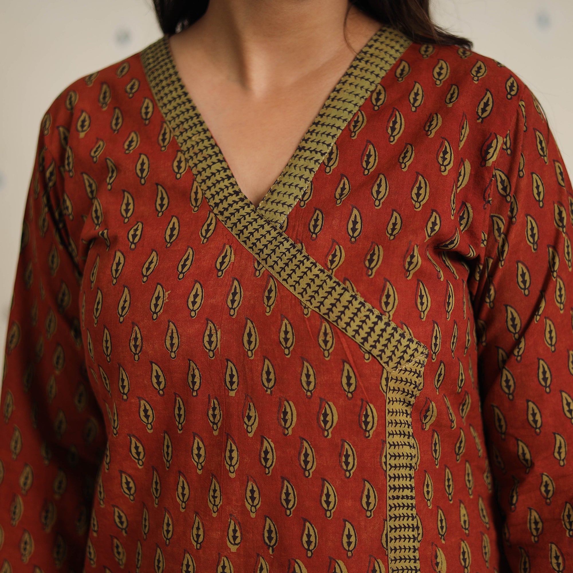 Each piece is hand block printed and dyed using natural colors over a slow process of 15–20 days. As a result, you may notice slight variations in color, mild pigment smudges, or irregular dye patterns, these are not defects. They’re gentle marks of authenticity, proudly bearing the touch of human hands, heritage, and nature’s own palette. Wear them like a signature, because no two pieces are ever alike.