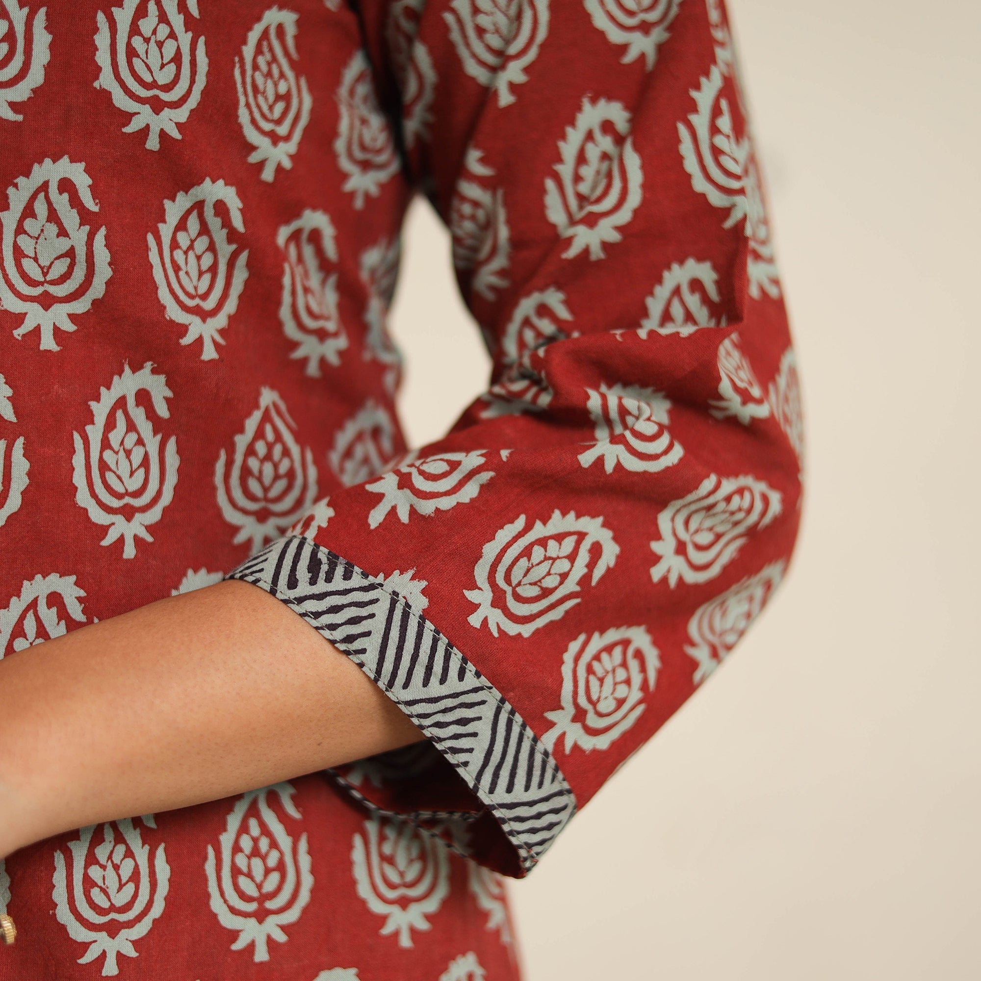 Each piece is hand block printed and dyed using natural colors over a slow process of 15–20 days. As a result, you may notice slight variations in color, mild pigment smudges, or irregular dye patterns, these are not defects. They’re gentle marks of authenticity, proudly bearing the touch of human hands, heritage, and nature’s own palette. Wear them like a signature, because no two pieces are ever alike.