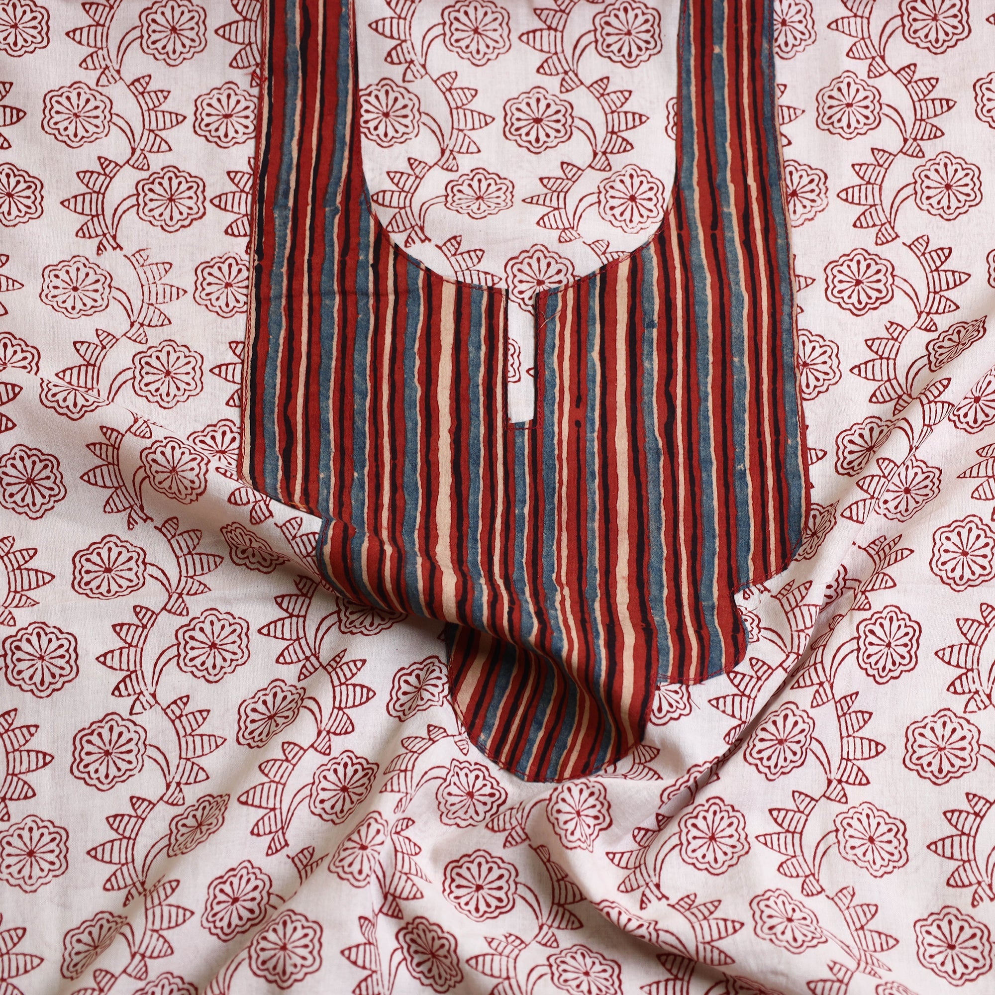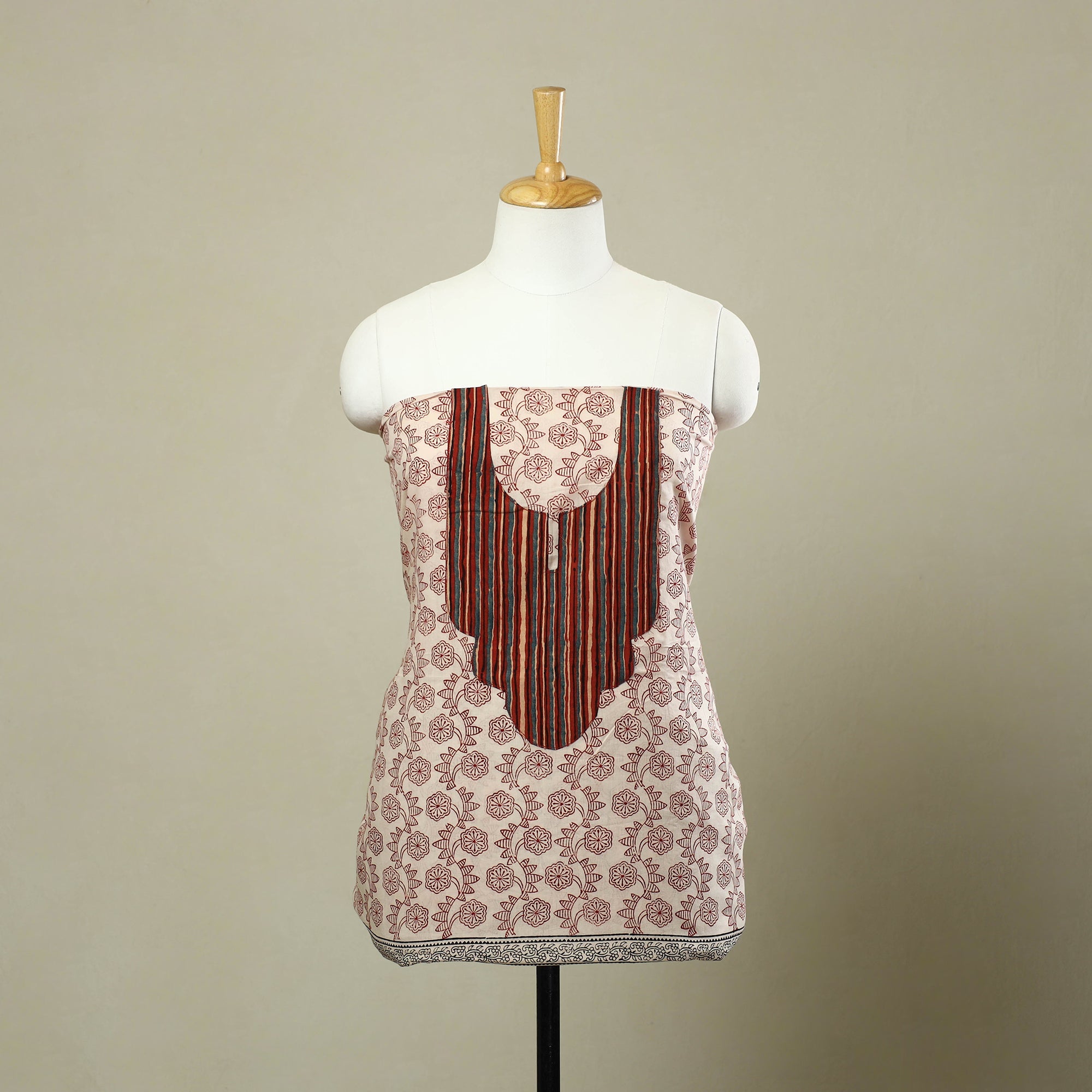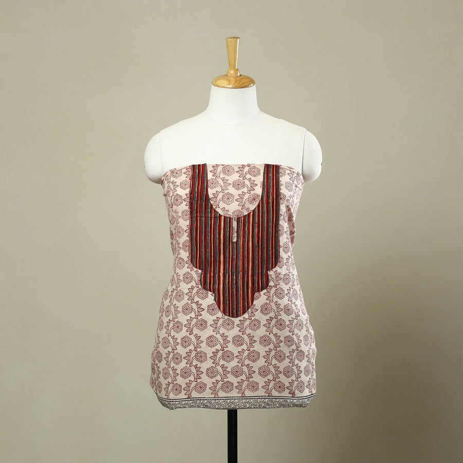 Bring tradition to your wardrobe with this beige bagh print patchwork cotton kurta material. Crafted using the traditional bagh block printing technique, it features intricate and vibrant patterns. This fabric blends cultural richness with elegance, making it perfect for custom kurtas that reflect both heritage and personal style while offering comfort and sophistication.