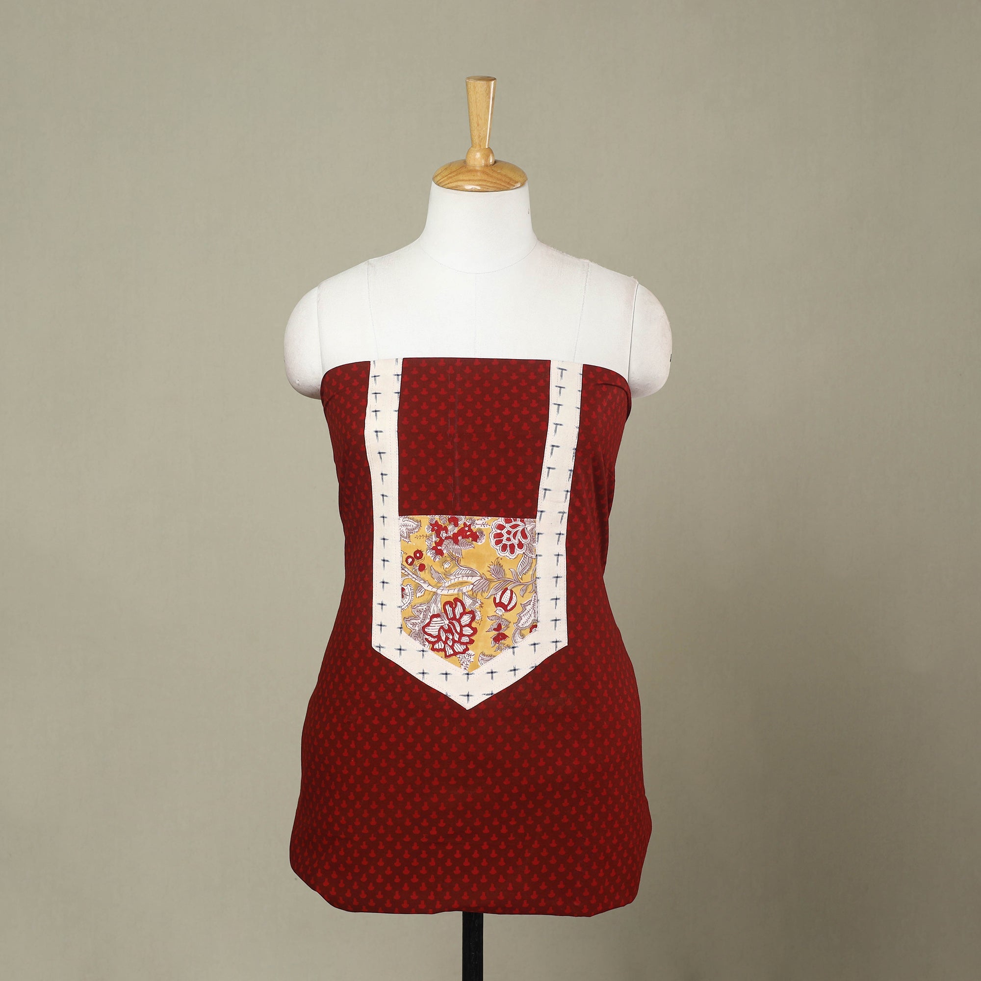 Step into a world where culture meets creativity. This red bagh print patchwork cotton fabric blends traditional hand block motifs from Madhya Pradesh with modern design sensibilities. Ideal for stitching elegant kurtas that carry a slice of history in every thread.