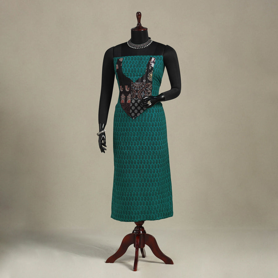 This green bagh print patchwork cotton kurta material features vibrant designs created using the traditional block printing technique from Bagh, Madhya Pradesh. Soft and breathable, it’s perfect for custom kurtas, offering both comfort and cultural style.
