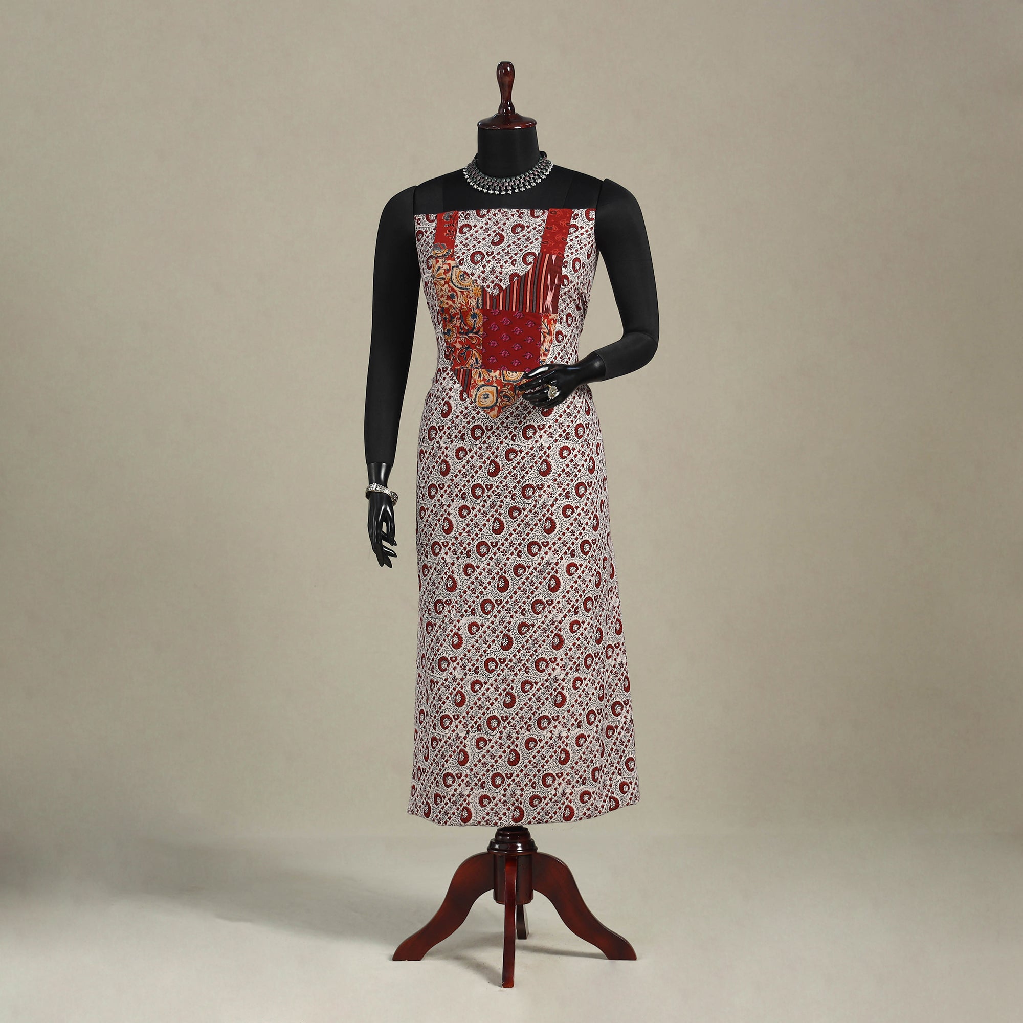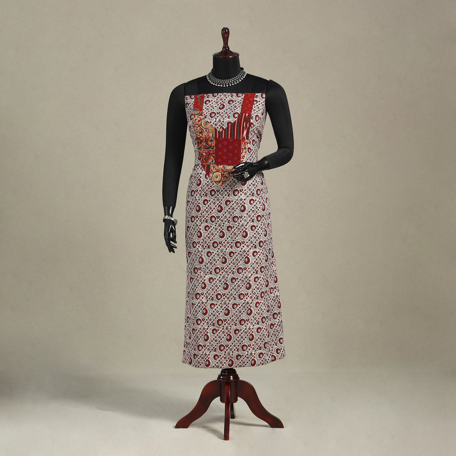 This beige bagh print patchwork cotton kurta material features vibrant designs created using the traditional block printing technique from Bagh, Madhya Pradesh. Soft and breathable, it’s perfect for custom kurtas, offering both comfort and cultural style.