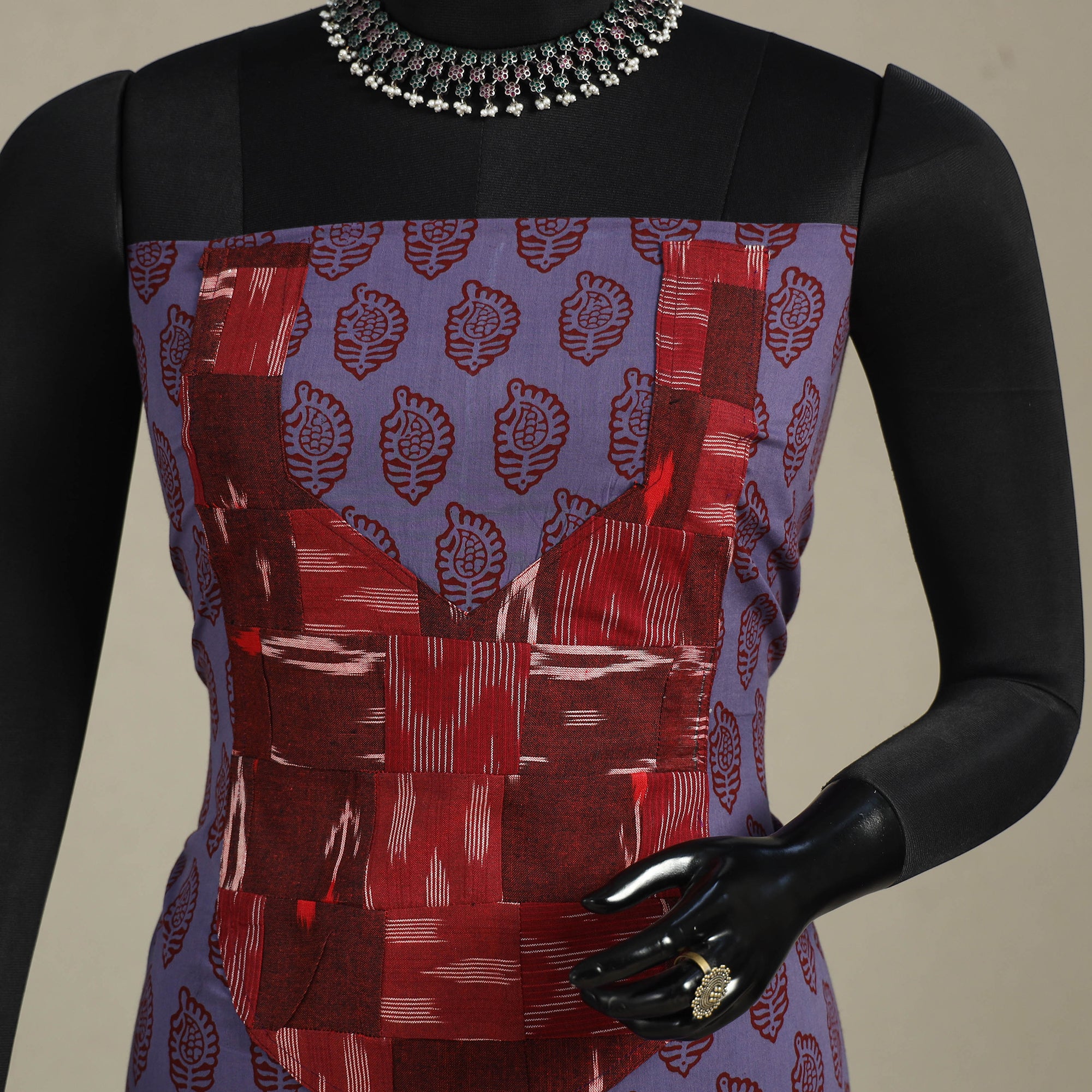 This purple bagh print patchwork cotton kurta material features vibrant designs created using the traditional block printing technique from Bagh, Madhya Pradesh. Soft and breathable, it’s perfect for custom kurtas, offering both comfort and cultural style.