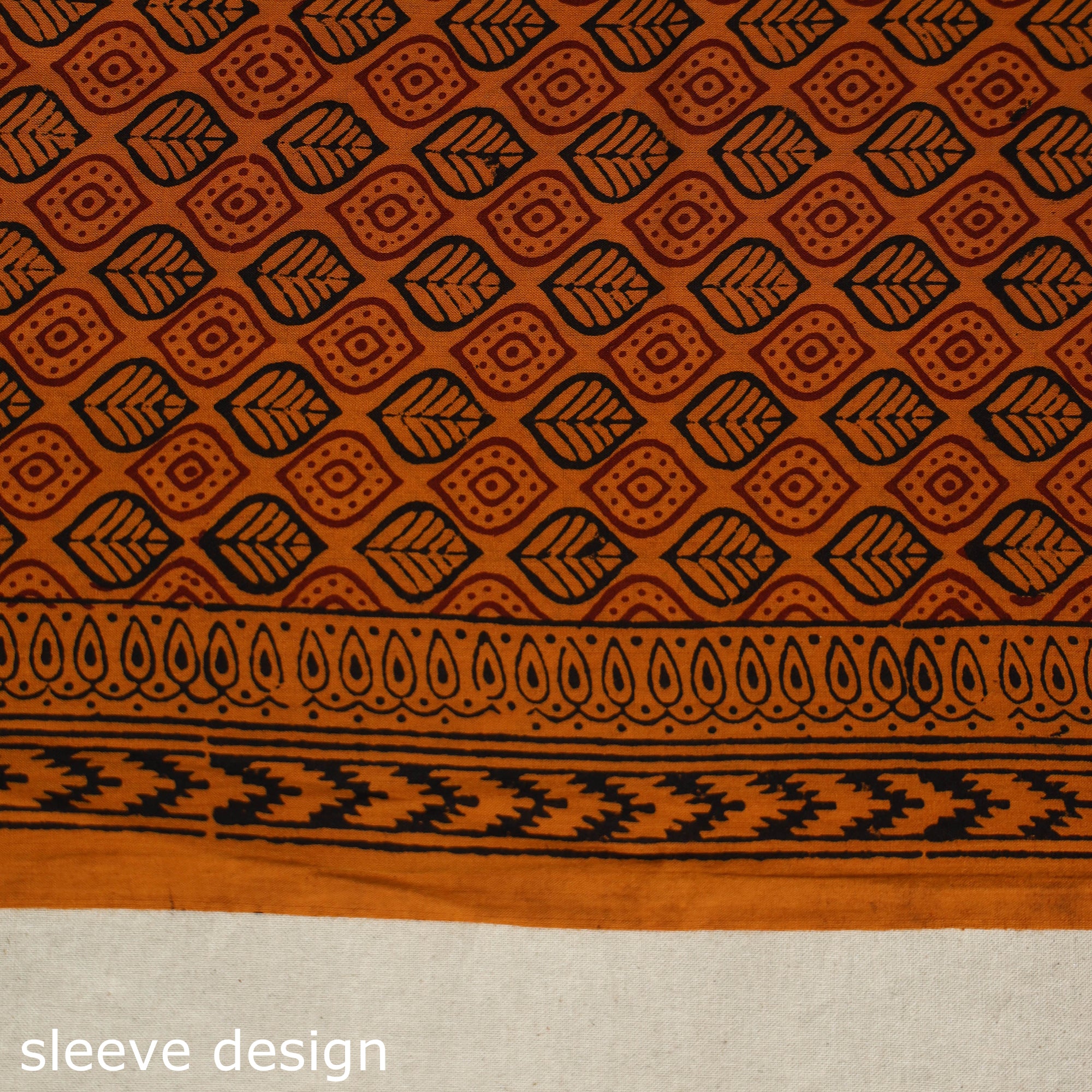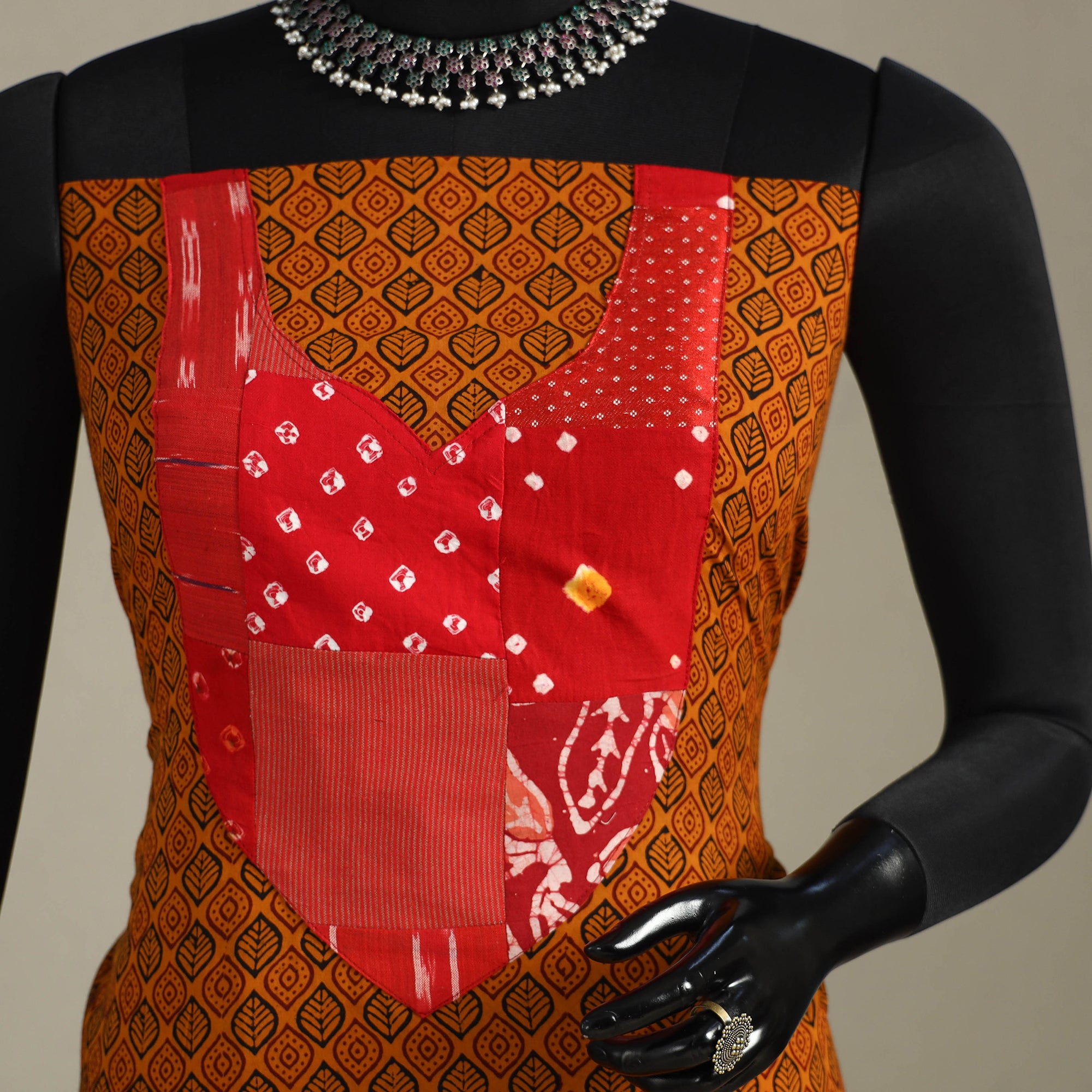 This orange bagh print patchwork cotton kurta material features vibrant designs created using the traditional block printing technique from Bagh, Madhya Pradesh. Soft and breathable, it’s perfect for custom kurtas, offering both comfort and cultural style.