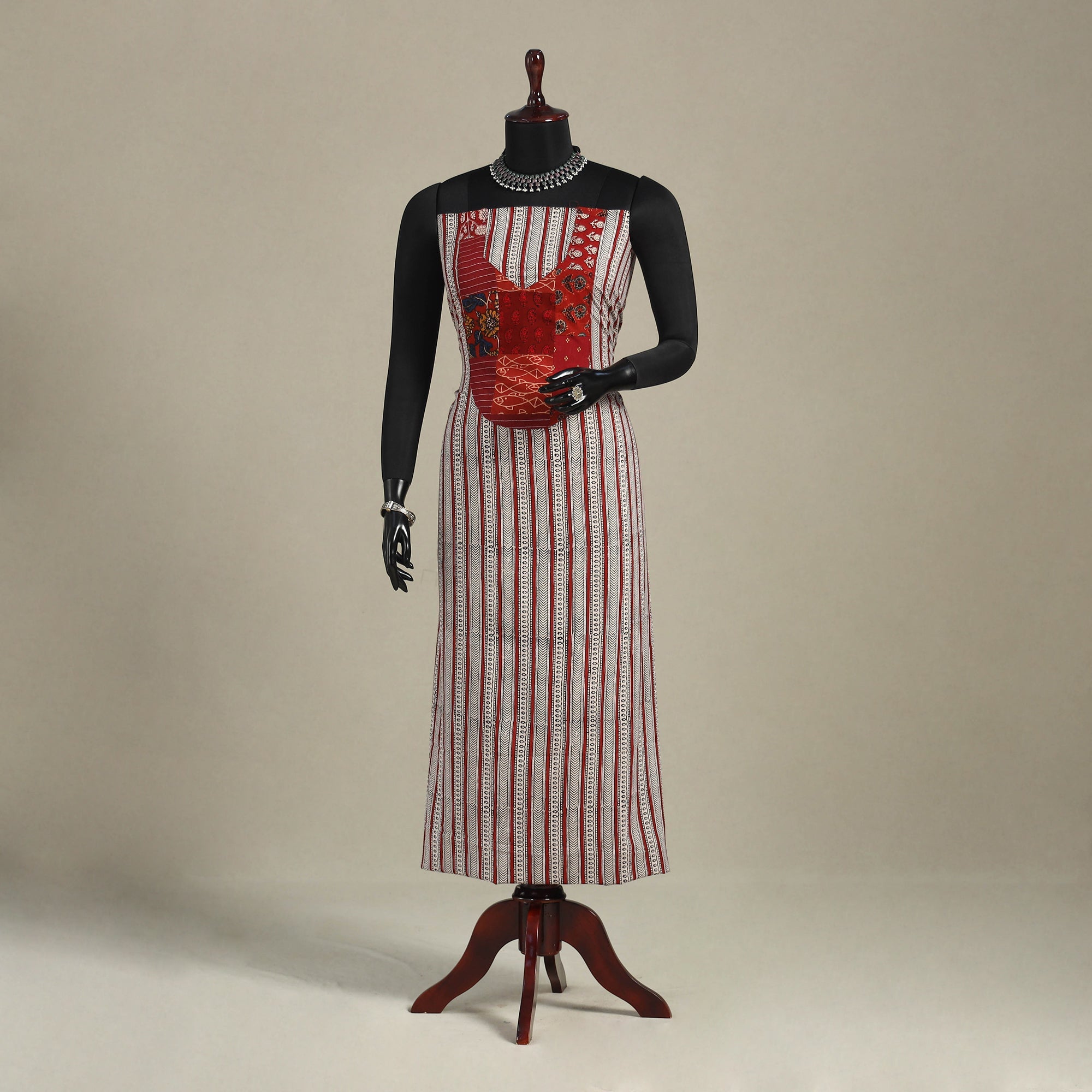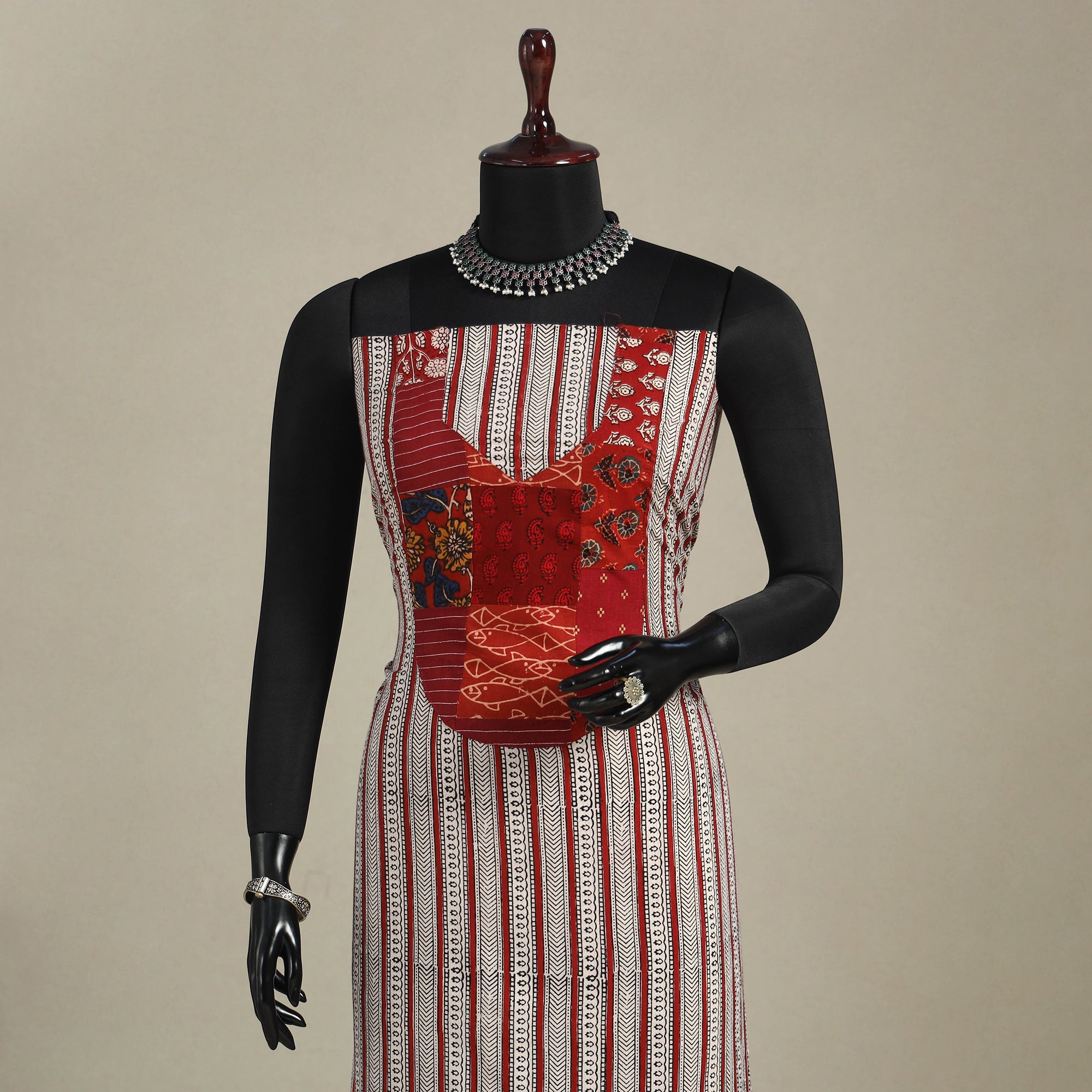 This beige bagh print patchwork cotton kurta material features vibrant designs created using the traditional block printing technique from Bagh, Madhya Pradesh. Soft and breathable, it’s perfect for custom kurtas, offering both comfort and cultural style.