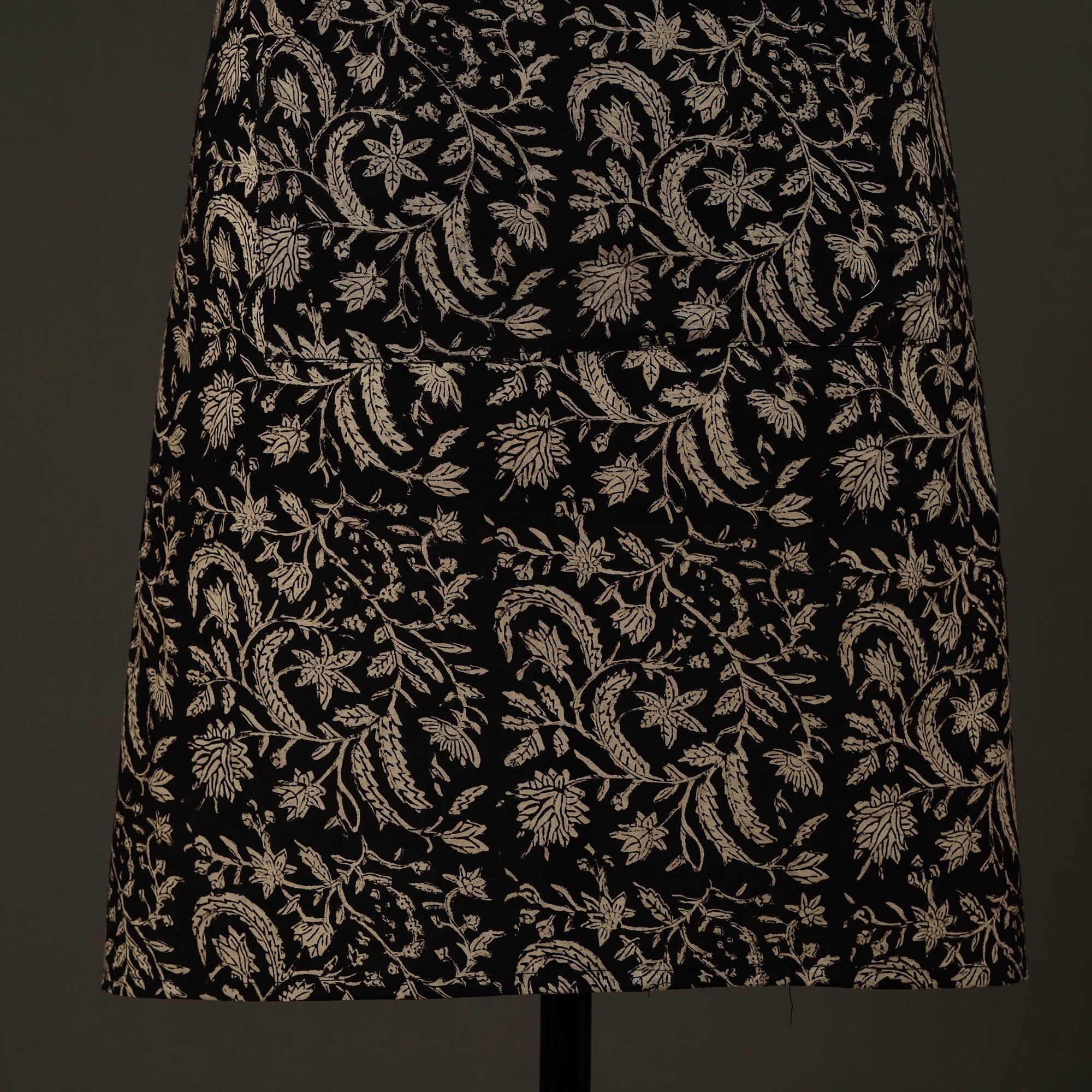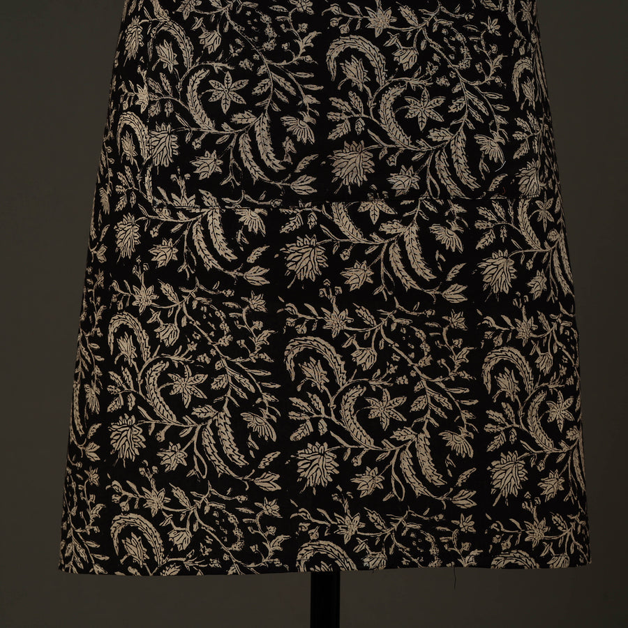 Upgrade your kitchen style with this black bagru block print cotton apron with pocket, featuring traditional hand-block printing techniques from Rajasthan. Made from soft, breathable cotton, it is lightweight. Designed to protect your clothing from splashes and spills, this handmade kitchen apron offers an adjustable neck strap and a front pocket for added convenience, making it ideal for daily cooking and baking.